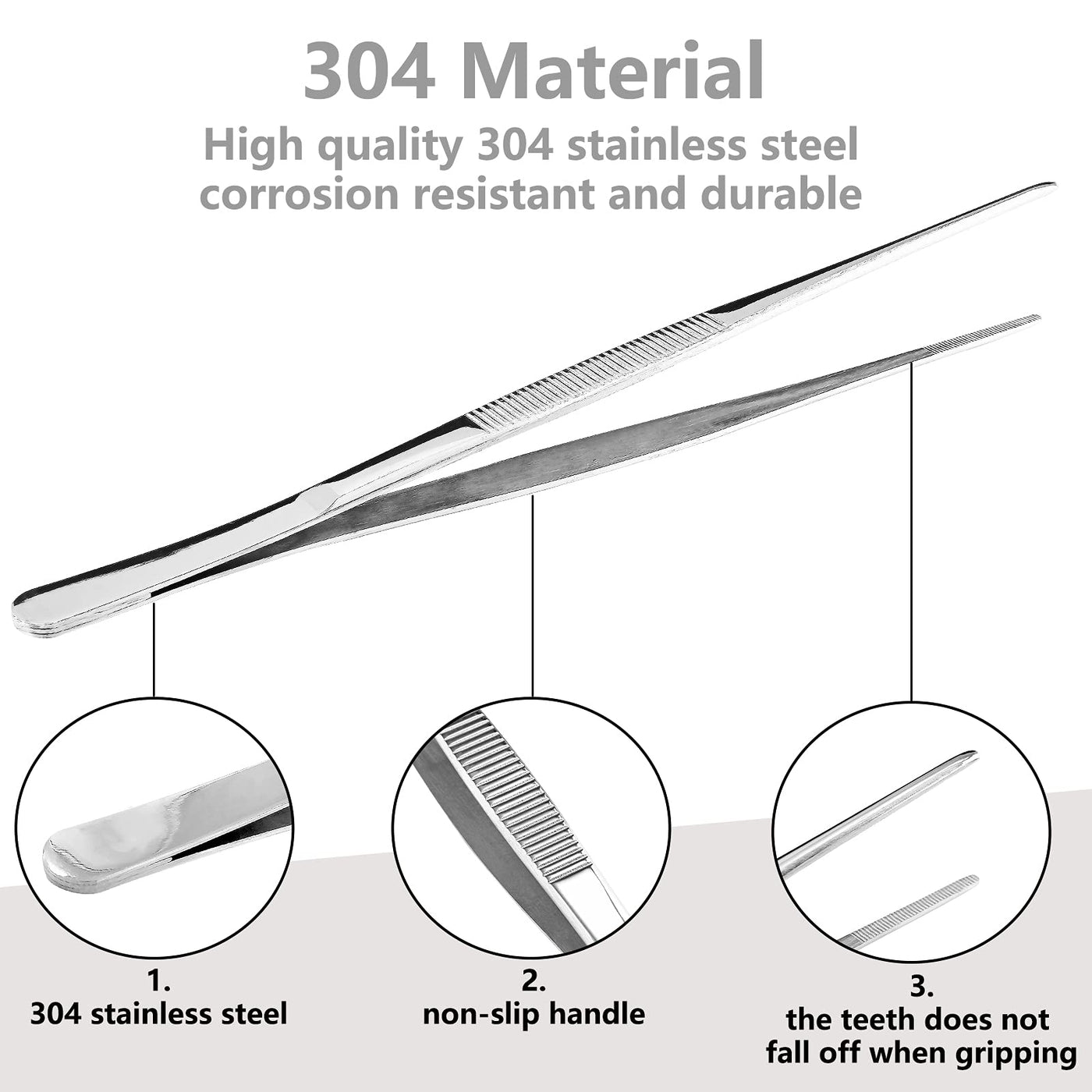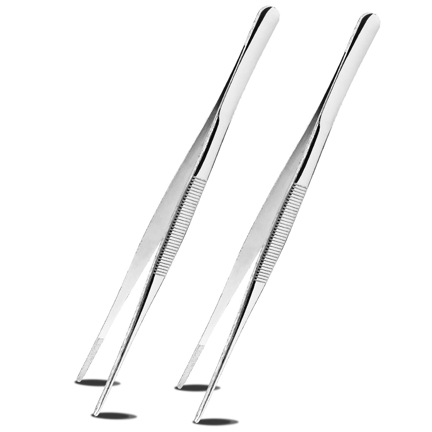 Suiwotin 2Pcs 10 Inch Cooking Tweezers Stainless Steel Kitchen Tweezers Long Tweezers With Straight Serrated Tip Heavy Duty Food
