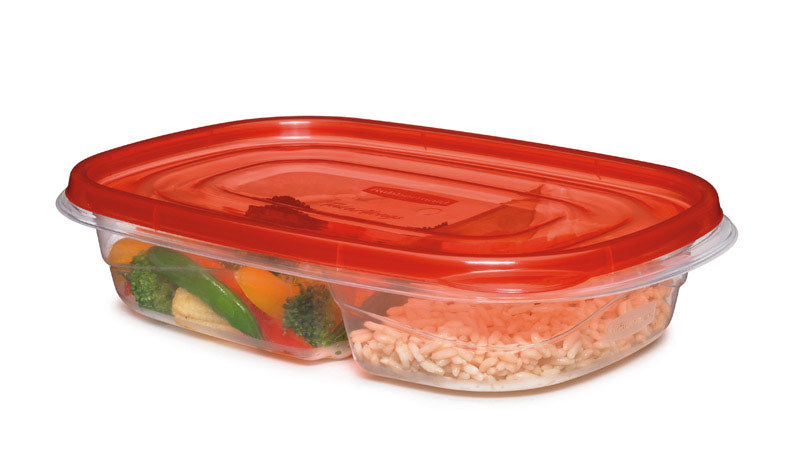 • Q: What are the dimensions of the Rubbermaid TakeAlongs Divided Rectangular Food Storage Containers? A: Each container has a capacity of 3.7 cups, making them suitable for meal prep and portion control.