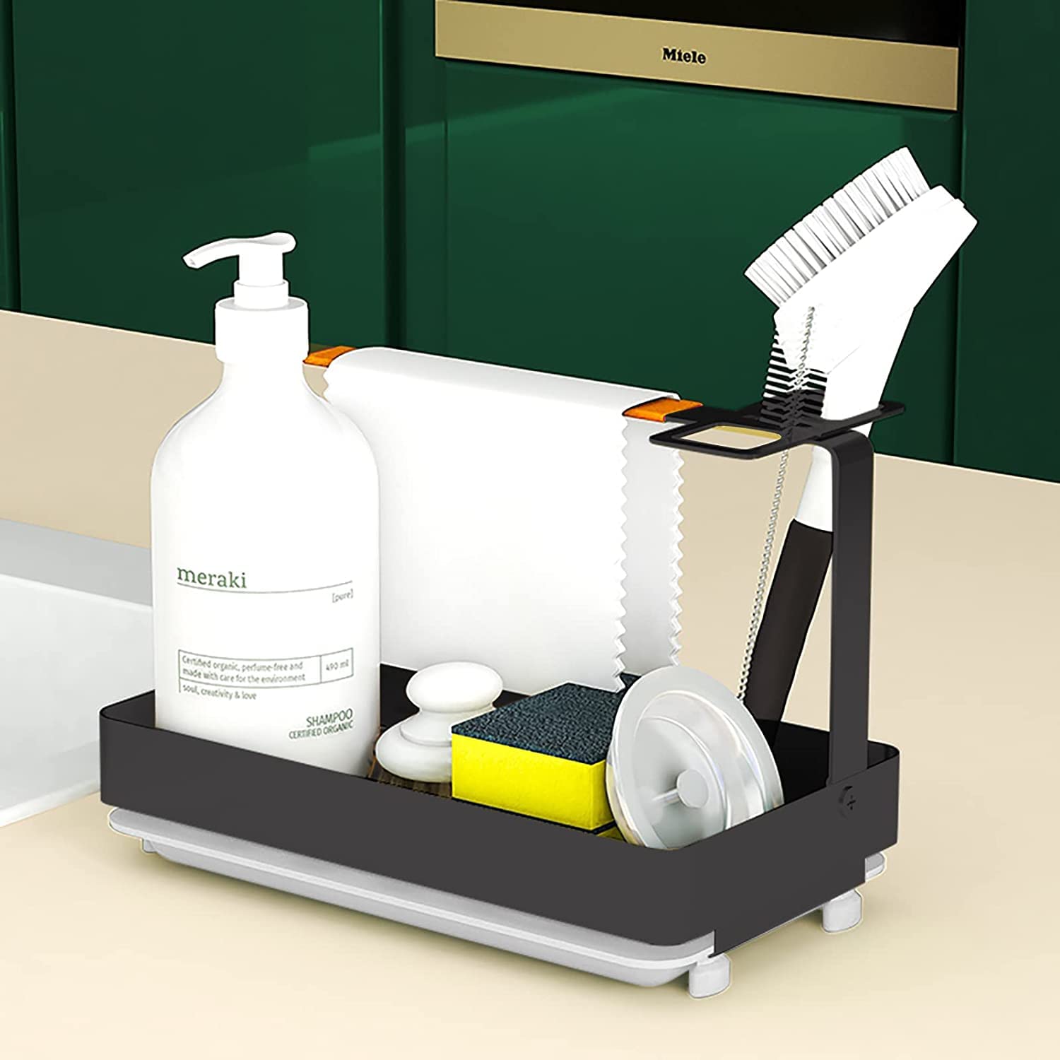 • Q: Can the sink caddy accommodate various kitchen tools? A: Absolutely! The sink caddy has a unique double-hole design and ample storage space, allowing it to hold various kitchen tools like sponges, brushes, and dishcloths.