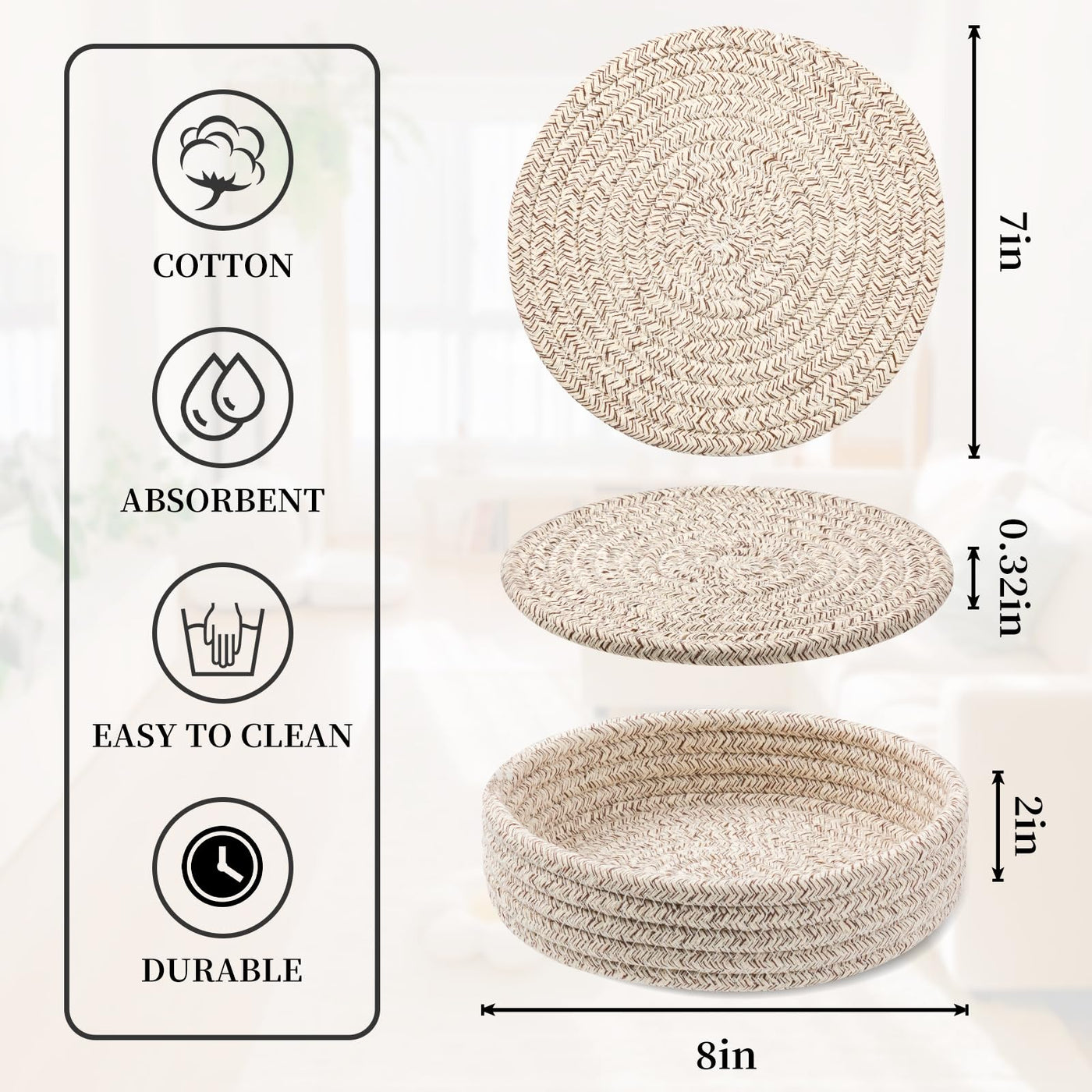 - Q: What material are the trivets made from? A: The trivets are woven from natural cotton, which offers strong heat resistance compared to silicone mats.
