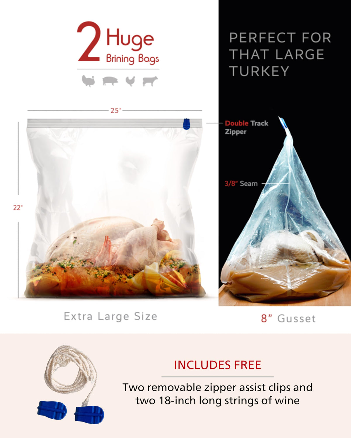 Turkey Brining Bags Set of 2 - Extra Large Holds up to 38lb - 25.5 x 21.5 inches - Heavy Duty with Gusseted Bottom - Double Trac