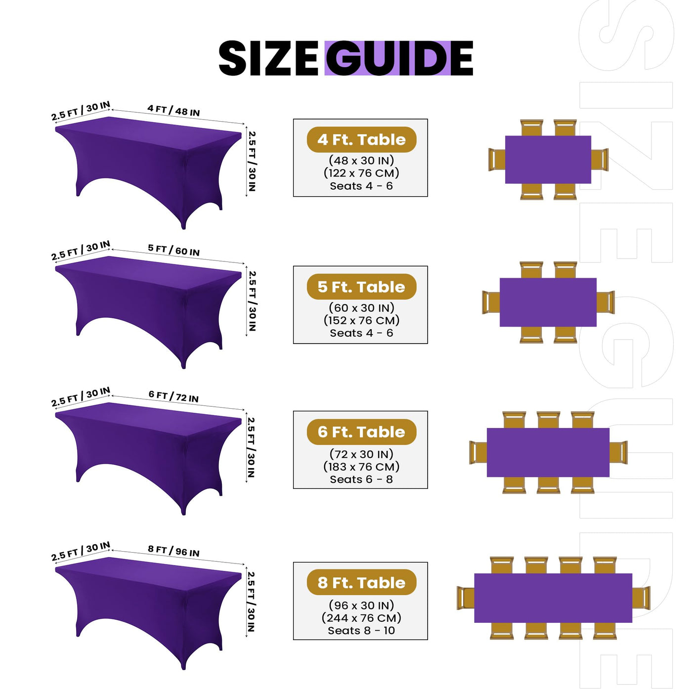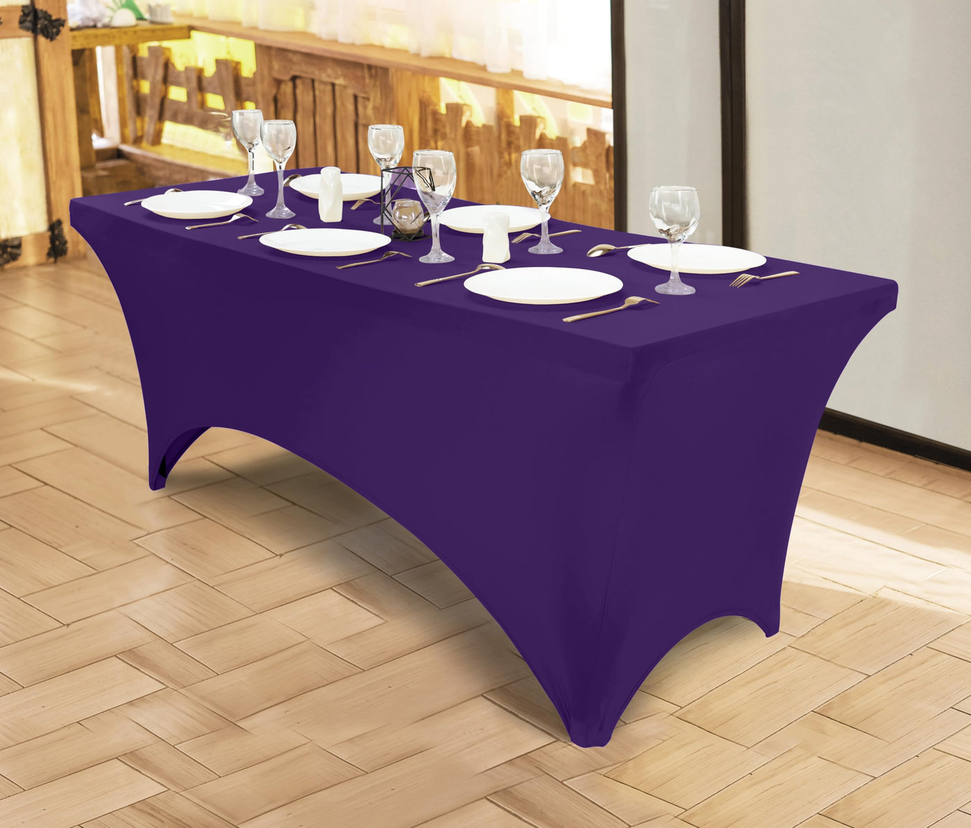 Utopia Kitchen 6Ft Spandex Table Cloth Rectangle [2 Pack, Purple] 200Gsm Premium Stretch, Lycra, Washable And Wrinkle Resistant