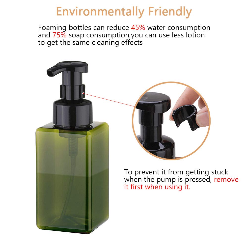 Uujoly Foaming Soap Dispenser, 450Ml (15Oz) Refillable Pump Bottle Plastic For Liquid Soap, Shampoo, Body Wash (2 Pcs) (Green)
