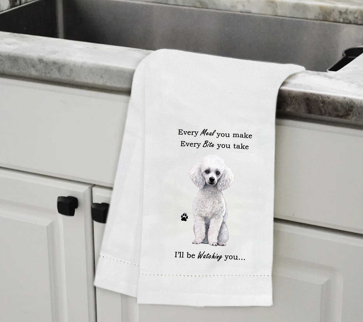 White Poodle Kitchen Towel - Soft Highly Absorbent - White Poodle Gifts - Dish Towels For Washing Dishes - Tea Towels - Reusable