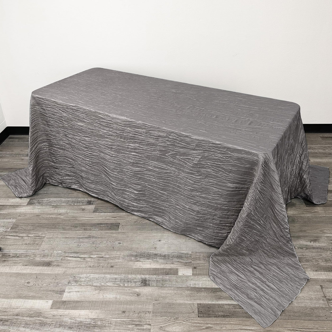 Your Chair Covers - 90 X 156 Inch Rectangular Crinkle Taffeta Tablecloth - Dark Silver/Platinum, Rectangle Table Linens For 8 Ft
