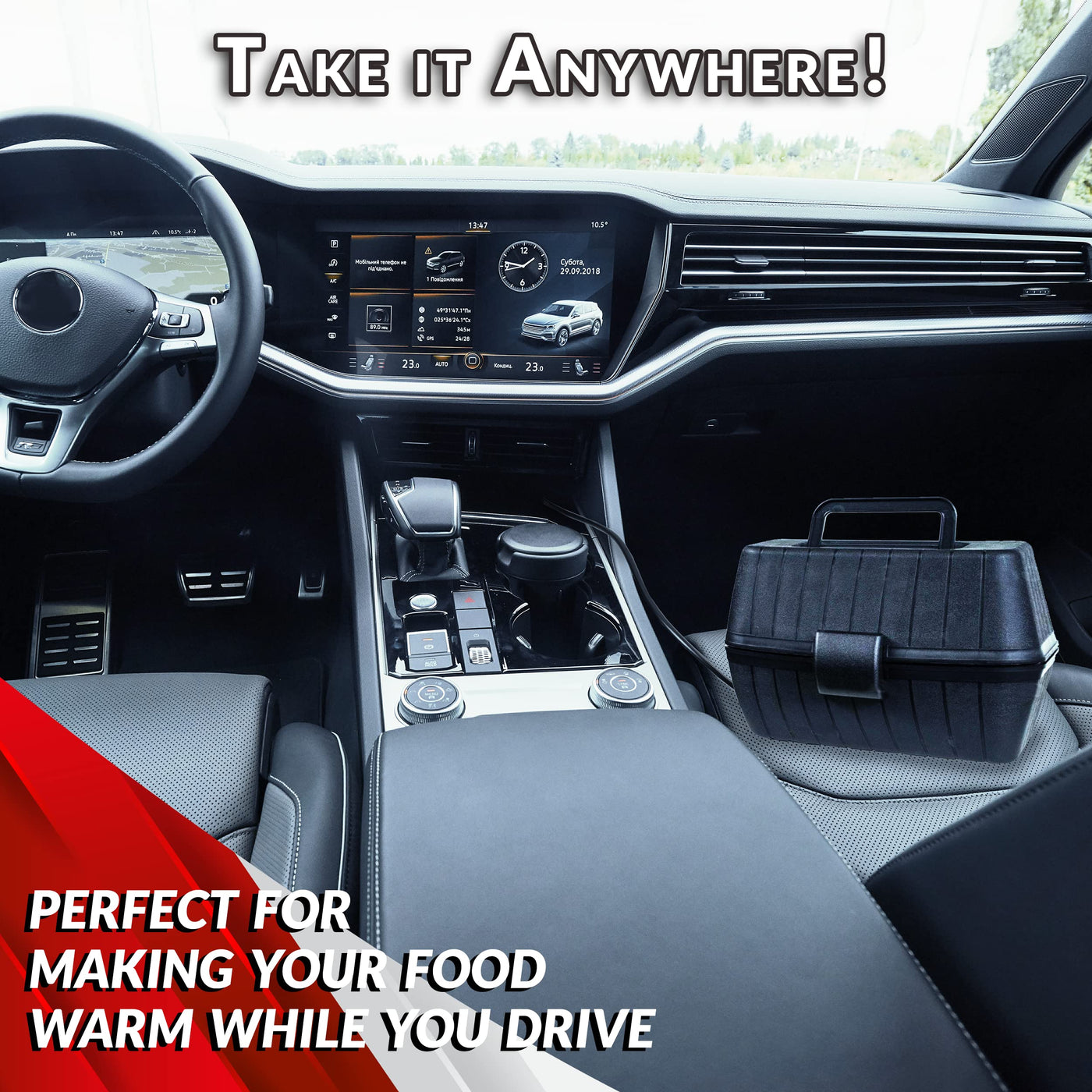 • Q: Can I use the heating lunch box while driving? A: Yes, you can use the heating lunch box while driving, as it is designed to connect to a 12V adapter socket in your car.