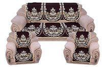 Eleganthomes Cotton Flowered 5 Seater Sofa Cover (Coffee, Brown , Standard)- Set Of 6