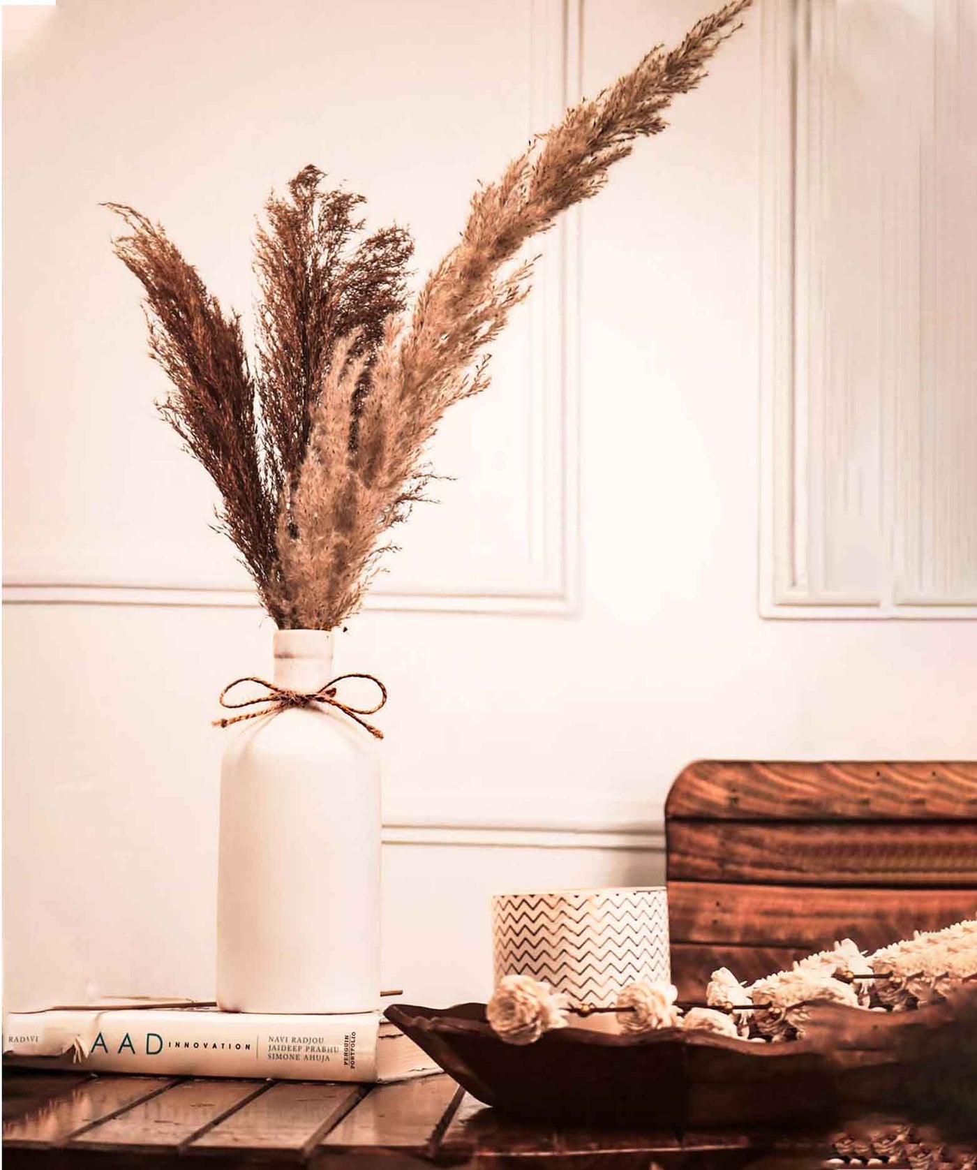Stylish Set Of 3 Unique Shapes: This Set Includes Three Distinct Vases In A Matte White Finish With Rustic Twine Accents, Perfect For Enhancing Your Home Decor. The Shapes Include A Tall Cylindrical Vase, A Rounded Vase, And A Uniquely Sculpted Vase To Add Artistic Charm To Any Space.