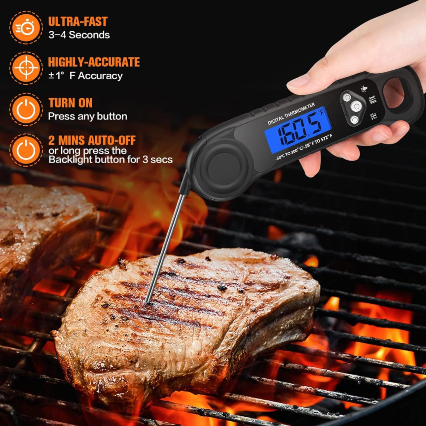 Ammzo Meat Thermometer Digital, Instant Read Food Thermometer - Waterproof W/Backlight For Cooking, Candy, Deep Fry, Bbq, Grill,
