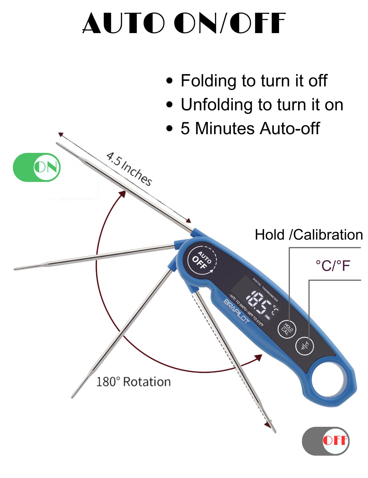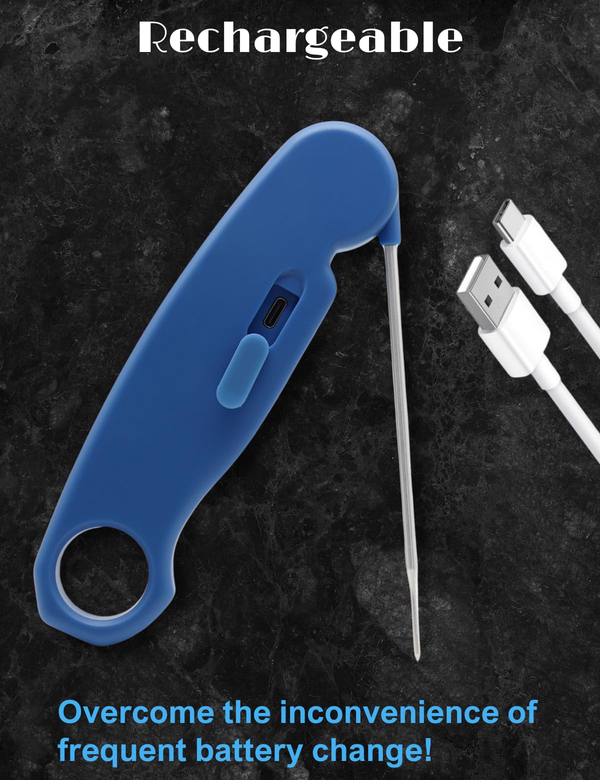 Brapilot Meat Thermometer Rechargeable For Cooking - 3~4S Instant Read Candy Cooking Food Thermometer, Led Display, Temperature