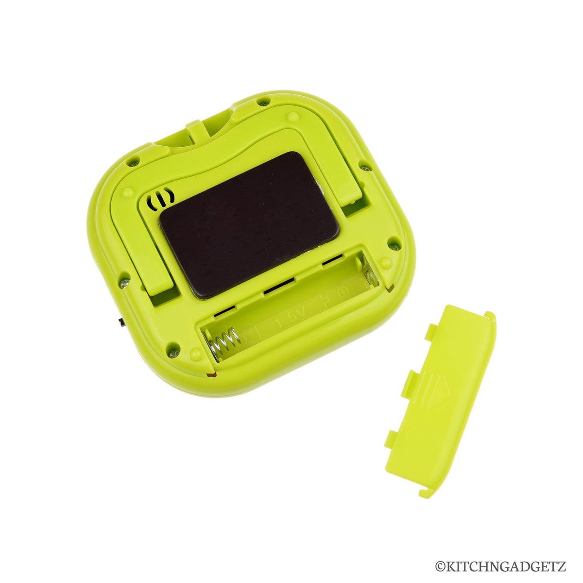 - Q: What is included in the package of the Digital Kitchen Alarm Clock? A: The package includes 1 Digital Kitchen Alarm Clock Timer in blue, 1 Digital Kitchen Alarm Clock Timer in green, 2 1.5V AAA batteries, and 1 Kitch N Gadgetz Cleaning Cloth.