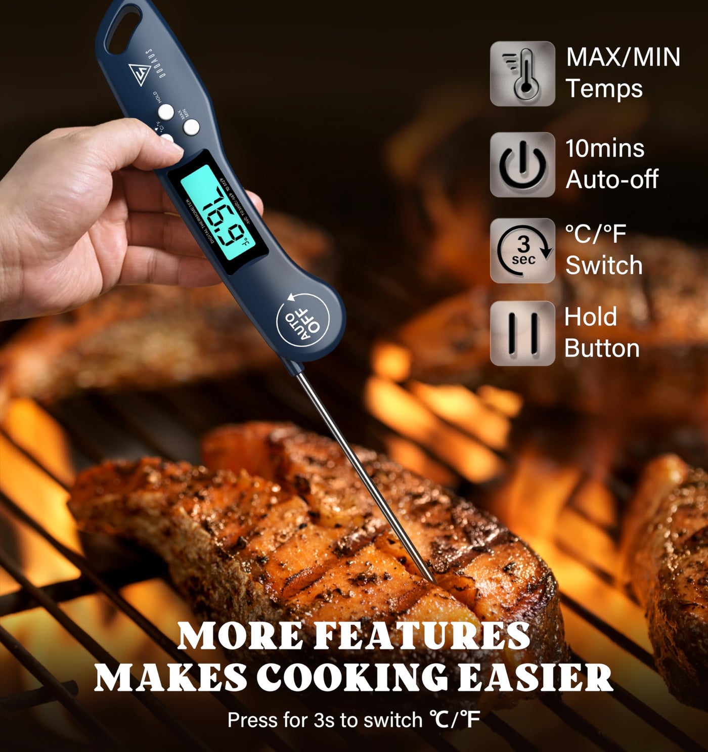 Doqaus Digital Meat Thermometer, Instant Read Food Thermometers For Cooking, Kitchen Probe With Backlit & Reversible Display, Wi
