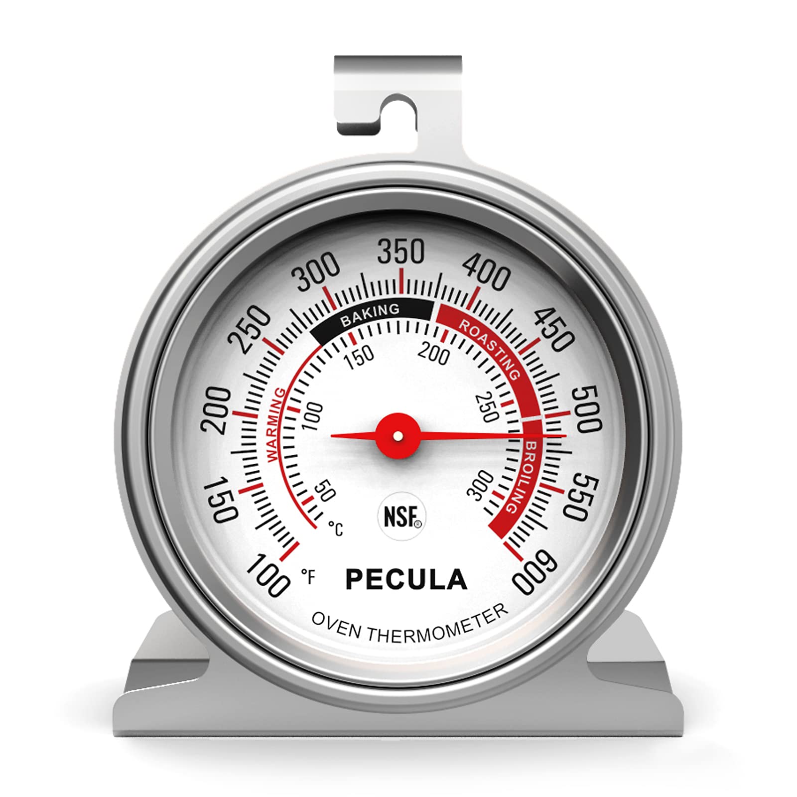 - Q: Is the PECULA Oven Thermometer easy to read? A: Yes, it features a large dial and clear red zone indicators, allowing for easy and quick reading of the oven temperature.
