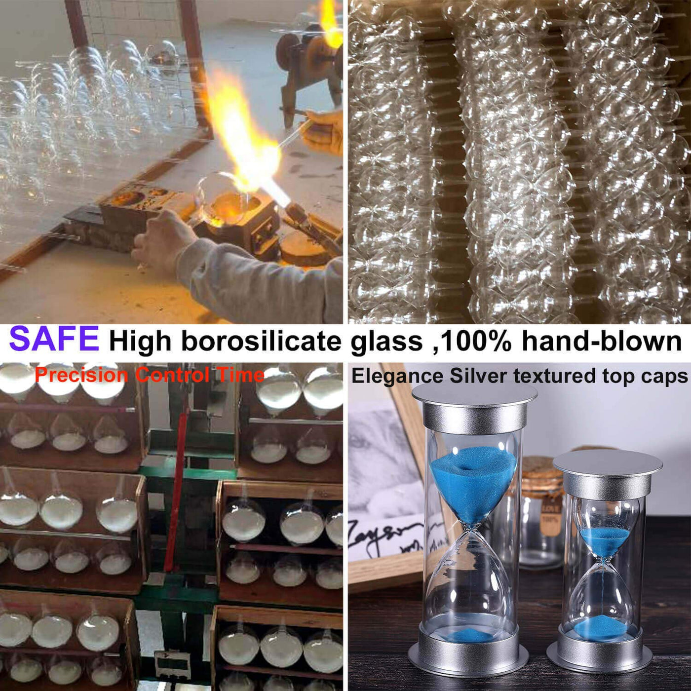 - Q: What materials are used in the construction of the hourglass timer? A: The hourglass timer is constructed from durable acrylic, high borosilicate glass, and natural sand. It is designed to be robust and long-lasting.
