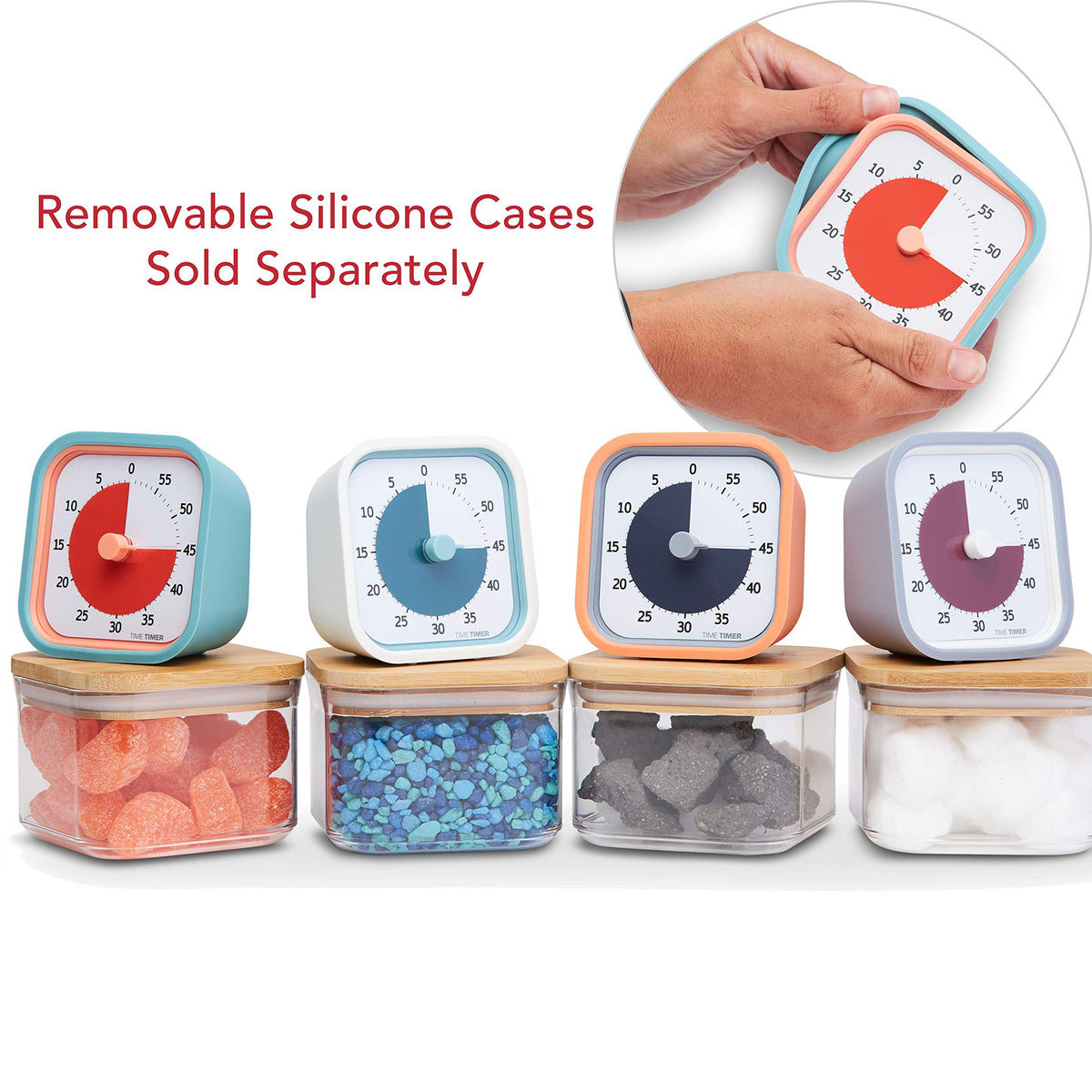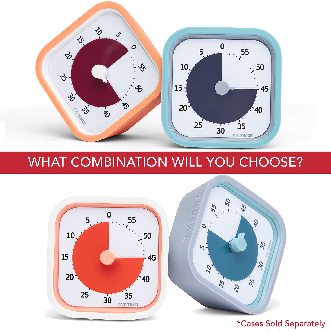 • Q: Are there different colors available for the timer? A: Yes, the Time Timer Home MOD is available in multiple colors including cotton ball white, lake day blue, dreamsicle orange, and pale shale. However, the silicone covers are sold separately.