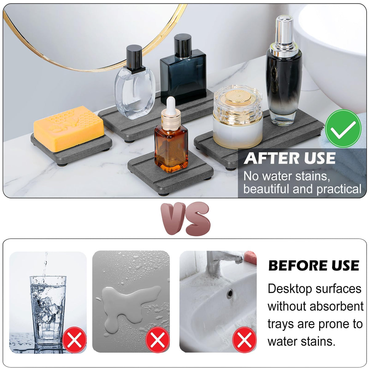 4Pcs Stone Drying Trays For Bathroom Sink, Water Absorbing Stone Tray, Water Absorbent Diatomaceous Earth Tray And Coaster, Diat