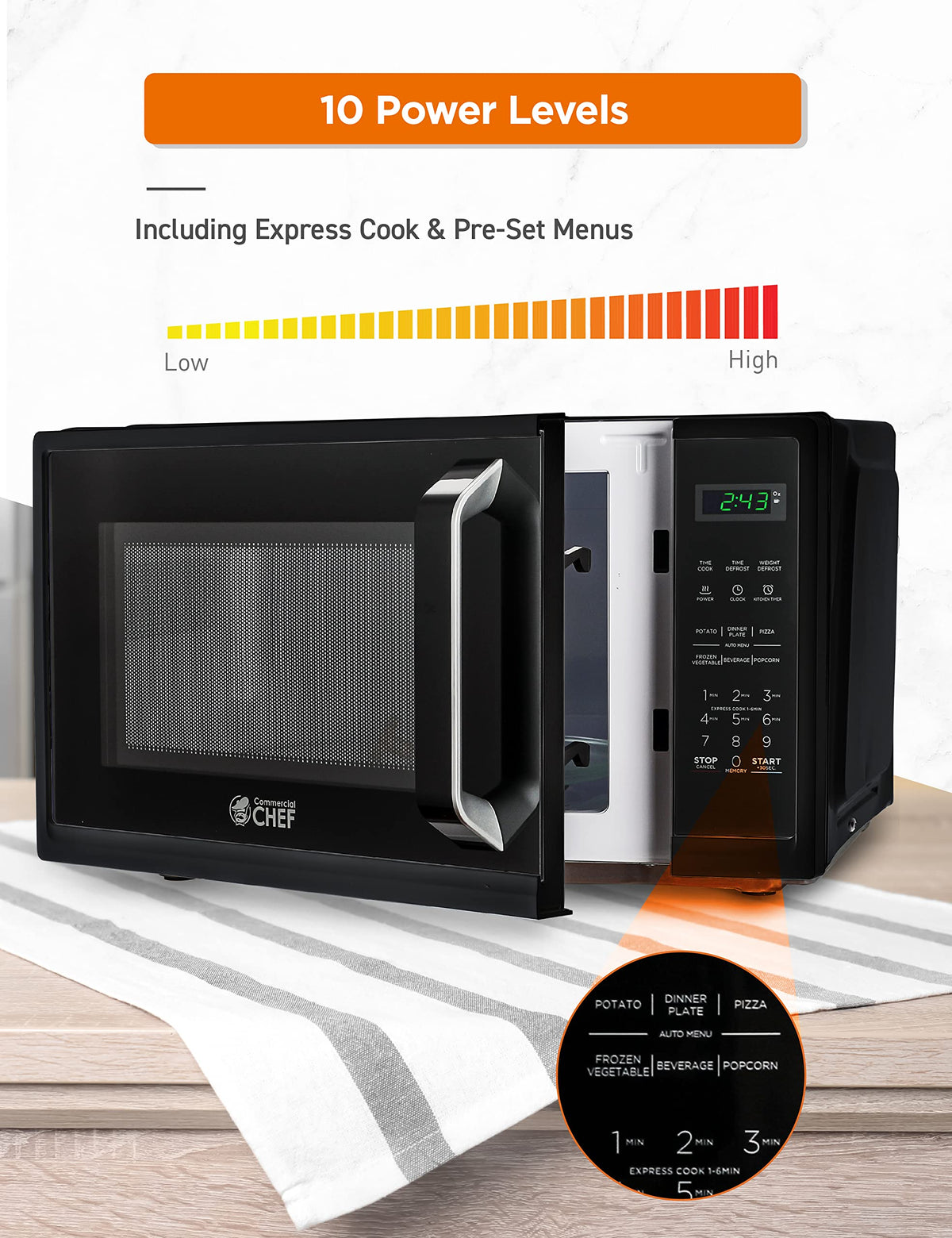 Commercial Chef 0.9 Cubic Foot Microwave With 10 Power Levels, Small Microwave With Grip Handle, 900W Countertop Microwave With