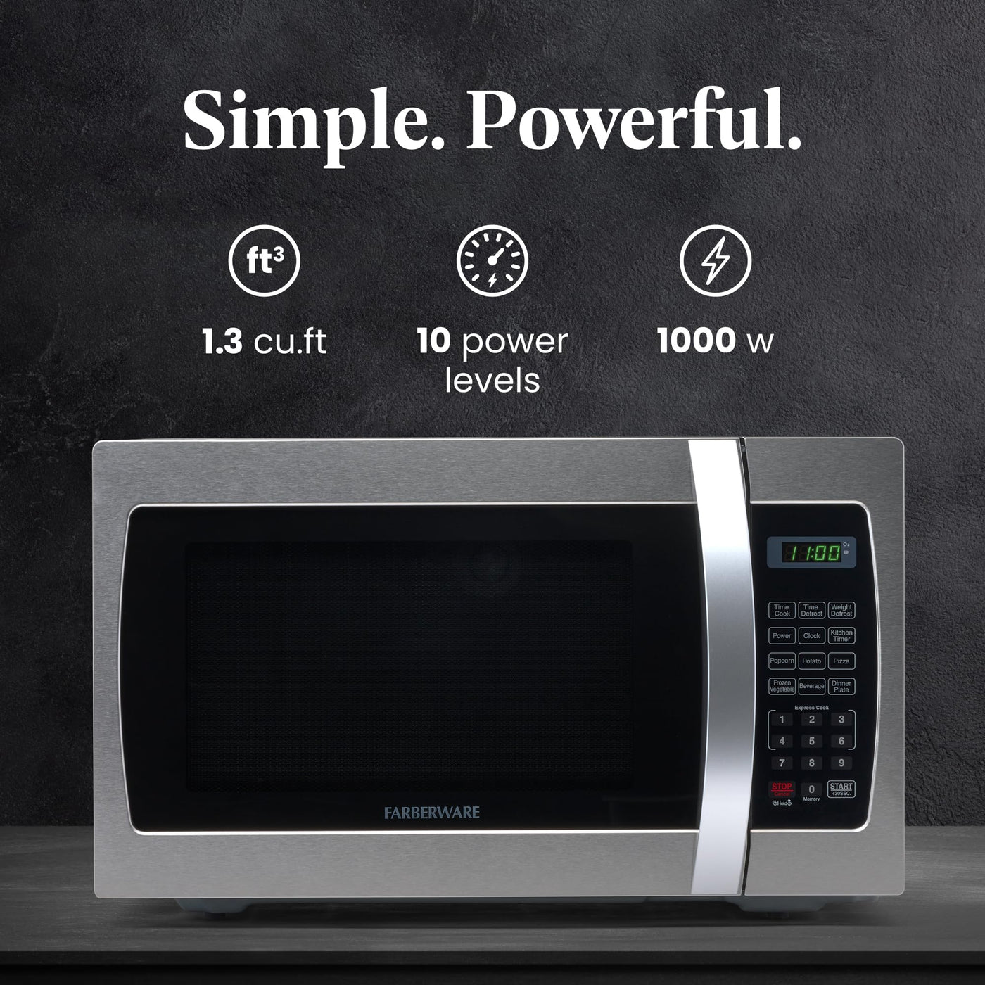 Farberware Countertop Microwave 1000 Watts, 1.3 Cu. Ft. - Microwave Oven With Led Lighting And Child Lock - Perfect For Apartmen