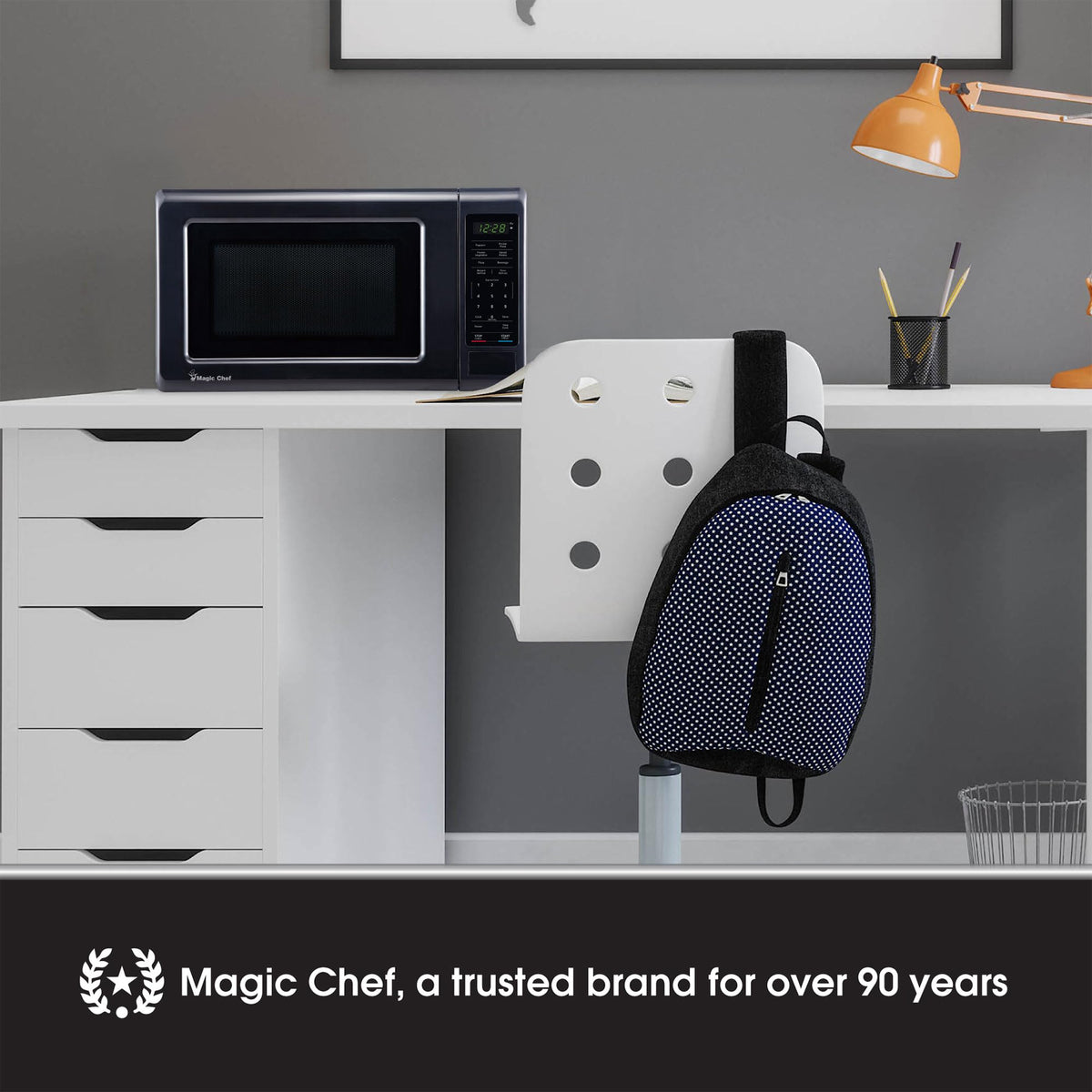 - Q: What are the dimensions of the Magic Chef MC77MB microwave? A: The Magic Chef MC77MB Countertop Microwave Oven has a compact size of 0.7 cubic feet, making it ideal for small spaces.