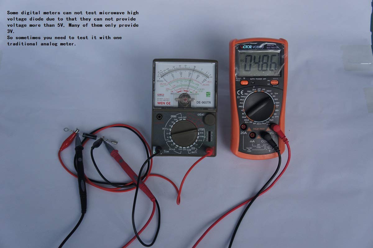 • Q: What type of multimeter should I use to test this diode? A: It is recommended to use an analog multimeter with a nine volt battery for testing this diode, as digital multimeters may not provide the necessary voltage to accurately assess its condition.