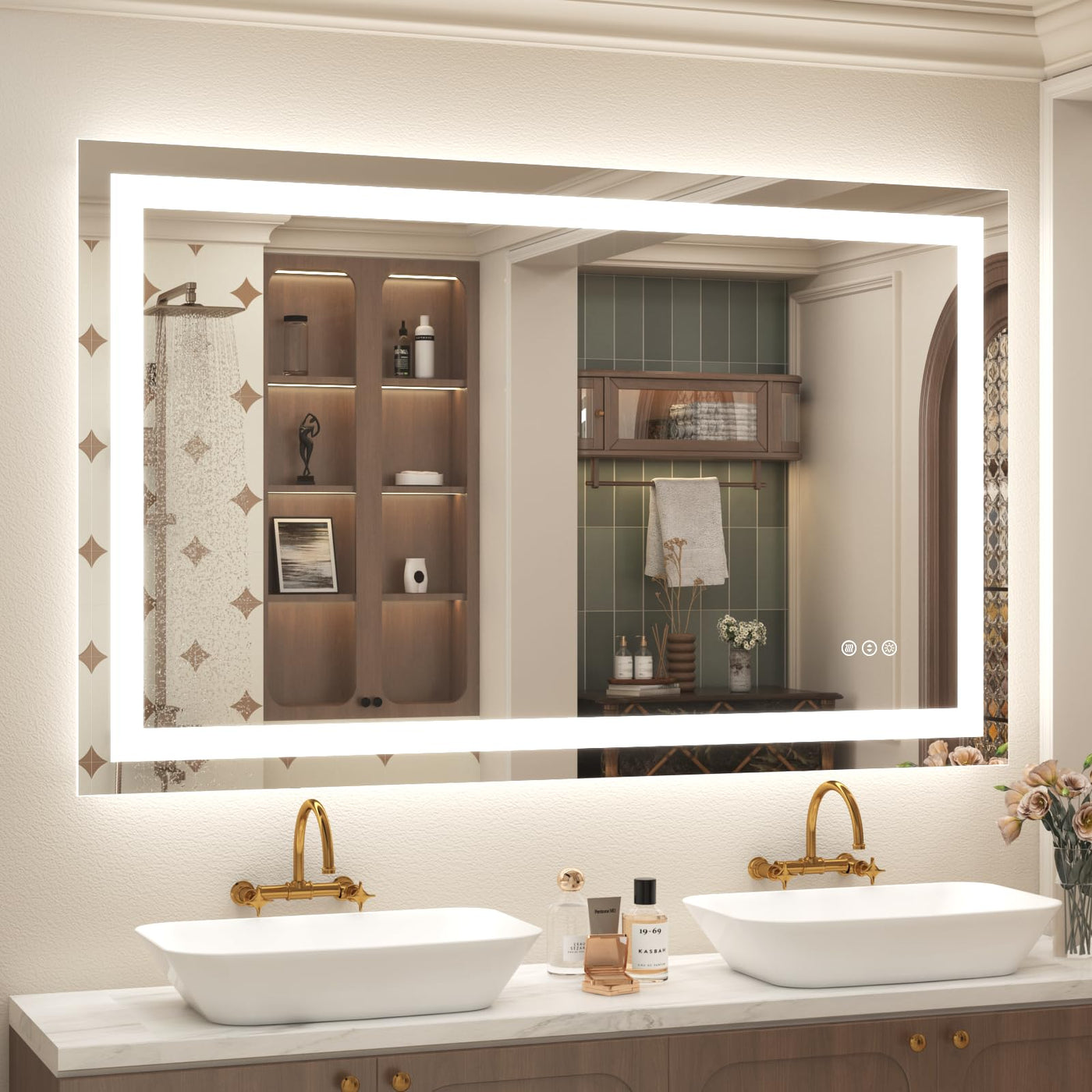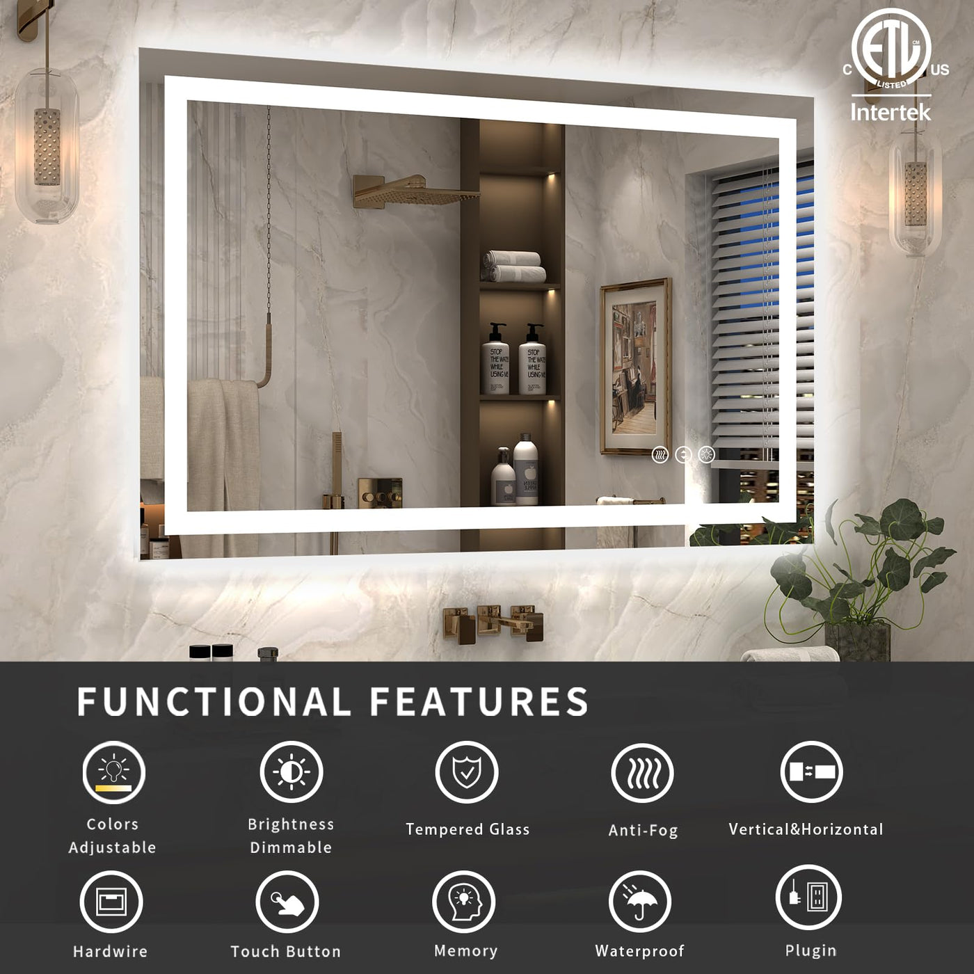ODDSAN 48x 30 LED Lighted Bathroom Mirror Over Sink Vanity Mirror with Lights for Wall Dimmable Defogger Shatter-Proof 3 Colors ETL Listed (Front + Backlit)