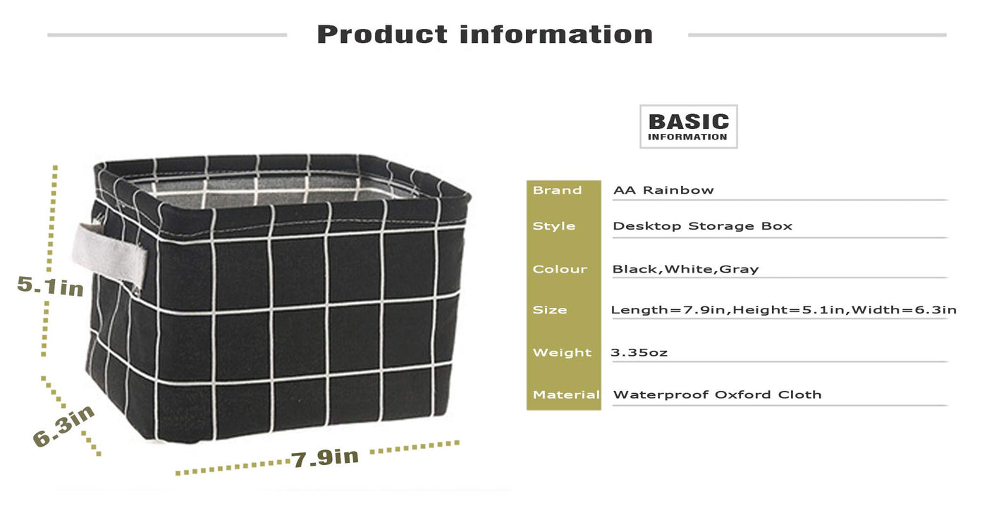 - Q: What are the dimensions of the AARAINBOW storage basket? A: The dimensions of the AARAINBOW storage basket are 7.9 inches in length, 5.1 inches in height, and 6.3 inches in width.