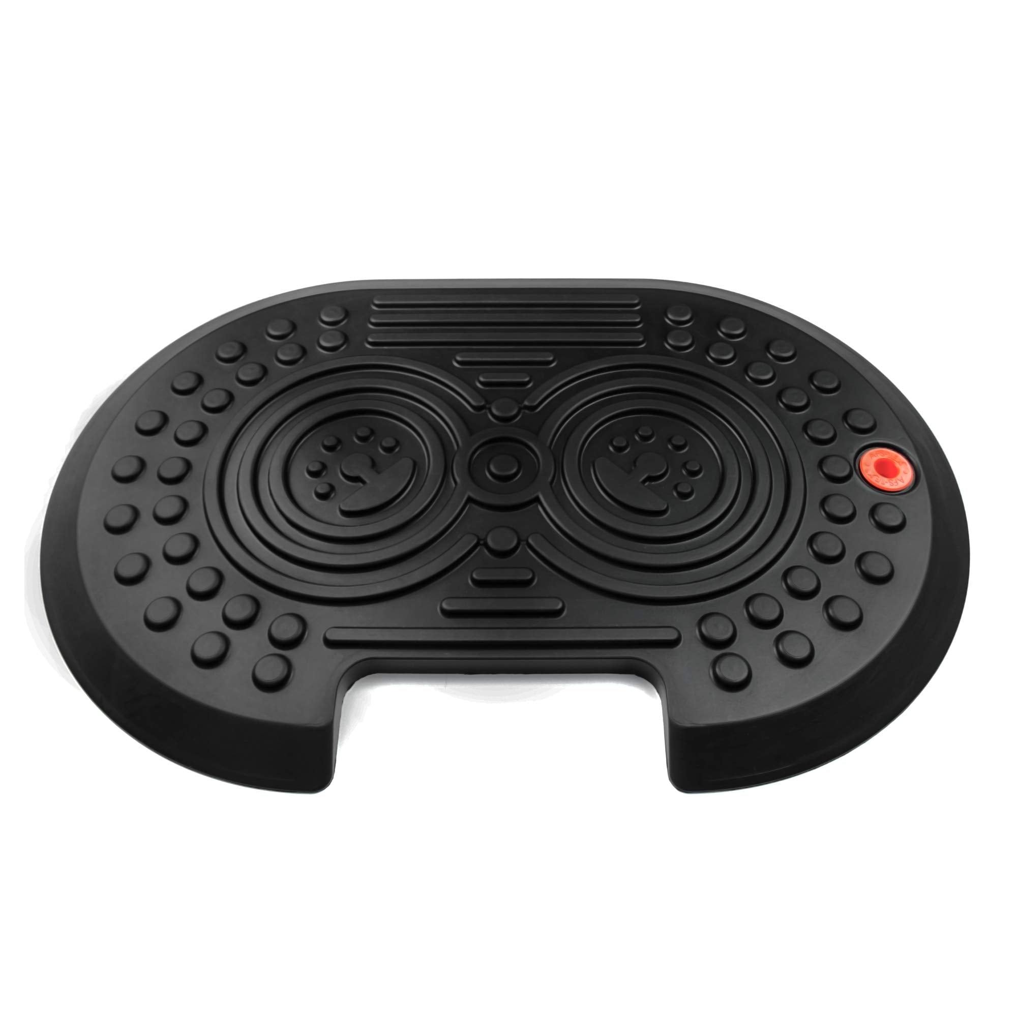 • Q: How does the mat help reduce fatigue? A: The mat features a cushioned surface with integral foot massaging pods that encourage foot movement, reducing fatigue and increasing comfort during prolonged standing.