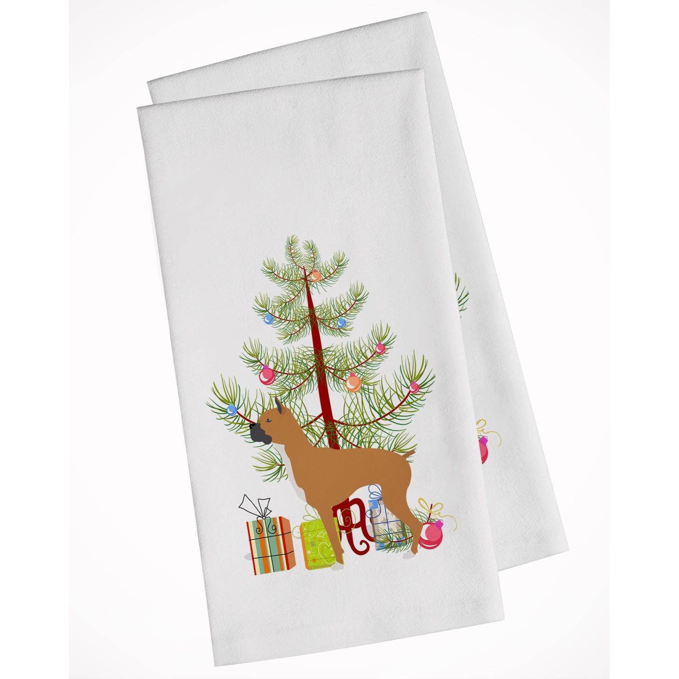Boxer Merry Christmas Tree White Kitchen Towel Set of 2