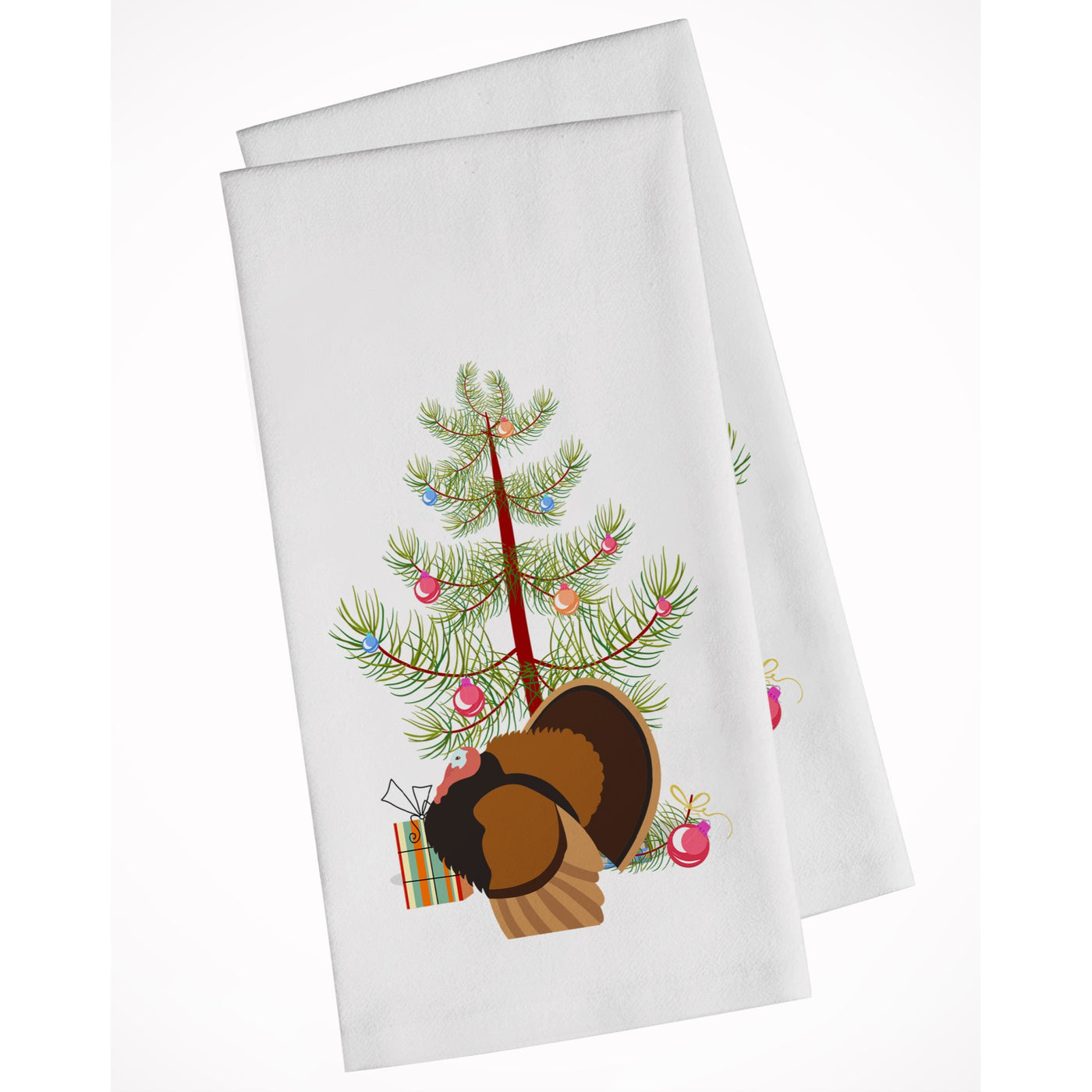 Bronze Turkey Christmas White Kitchen Towel Set of 2