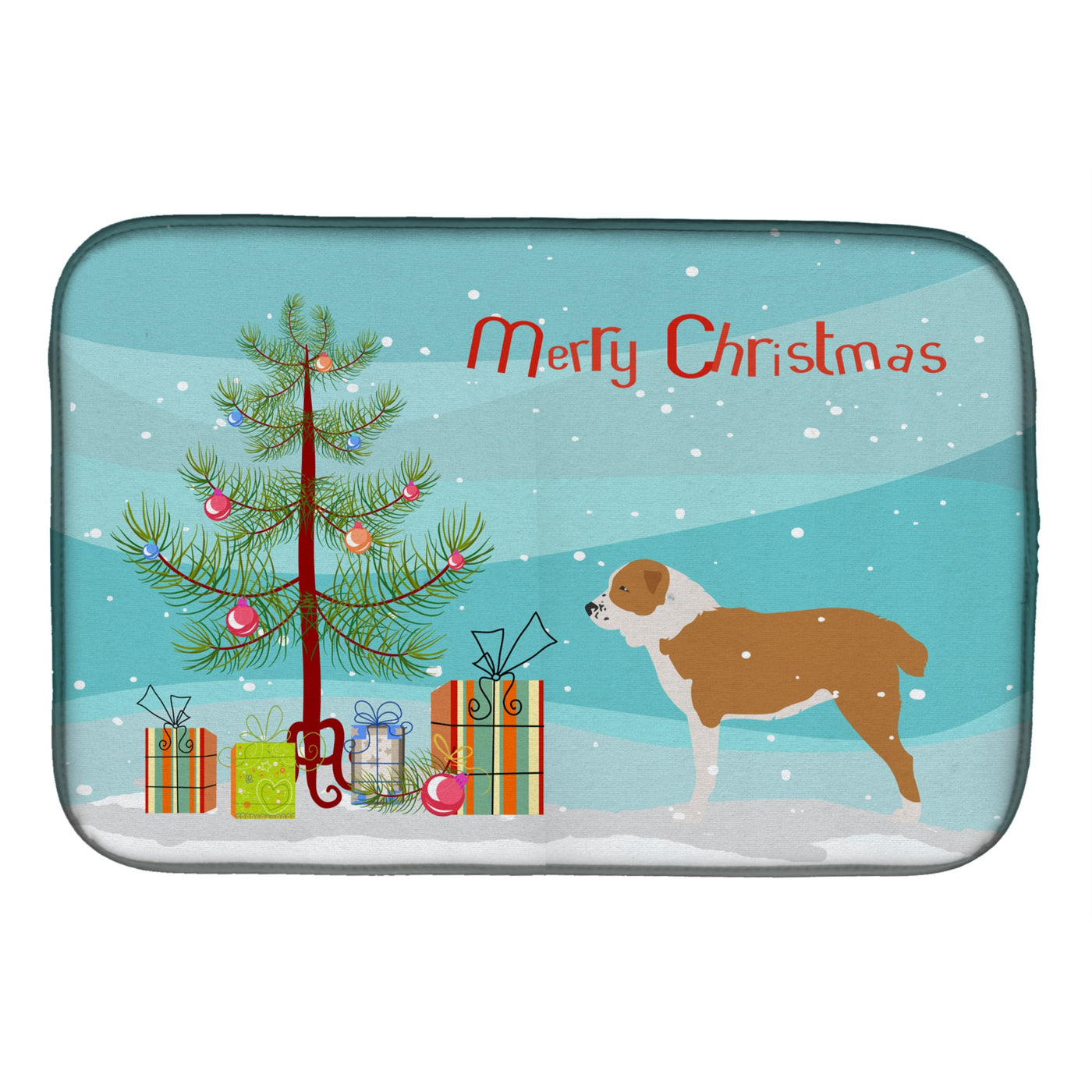 'Caroline's Treasures Central Asian Shepherd Dog Merry Christmas Tree Dish Drying Mat 14'''' x 21'''' Multicolor''