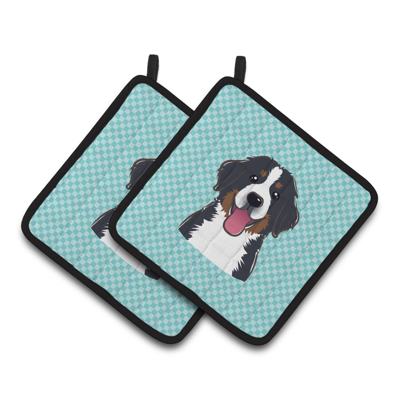 'Caroline's Treasures Checkerboard Blue Bernese Mountain Dog Pair of Pot Holders BB1175PTHD 7.5HX7.5W Multicolor''
