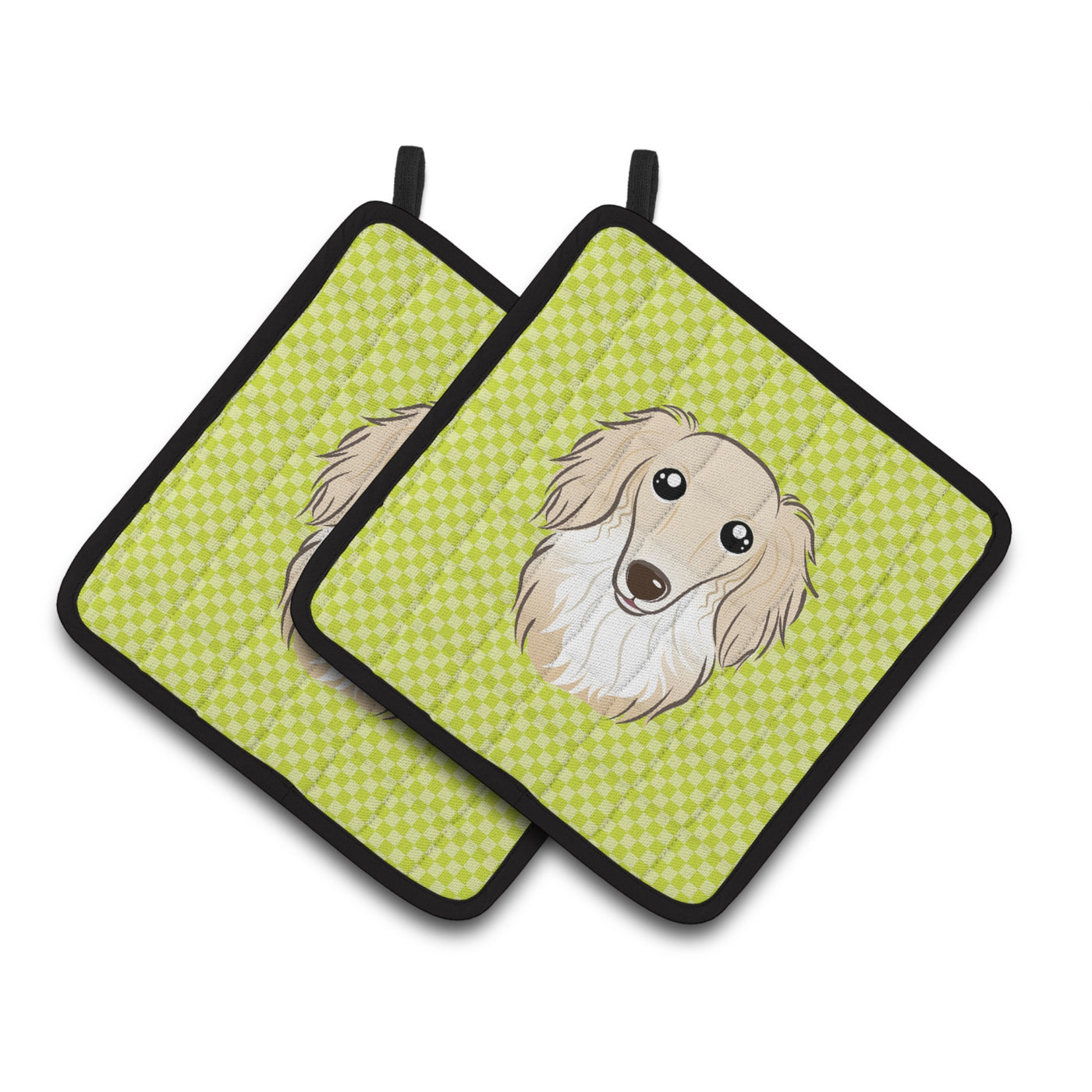 'Caroline's Treasures Checkerboard Lime green Longhair Creme Dachshund Pair of Pot Holders BB1274PTHD 7.5HX7.5W Multicolor''