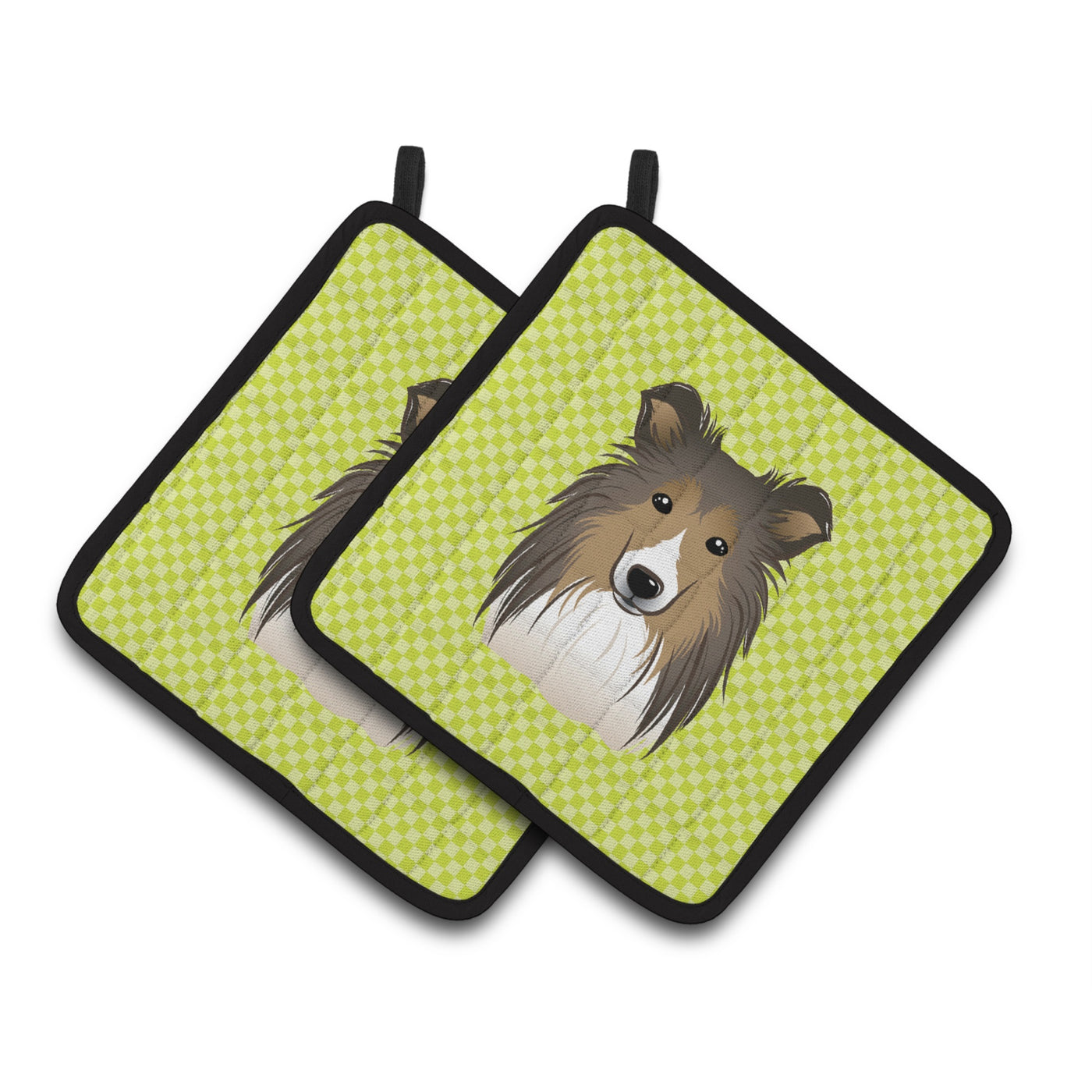 'Caroline's Treasures Checkerboard Lime green Sheltie Pair of Pot Holders BB1304PTHD 7.5HX7.5W Multicolor''