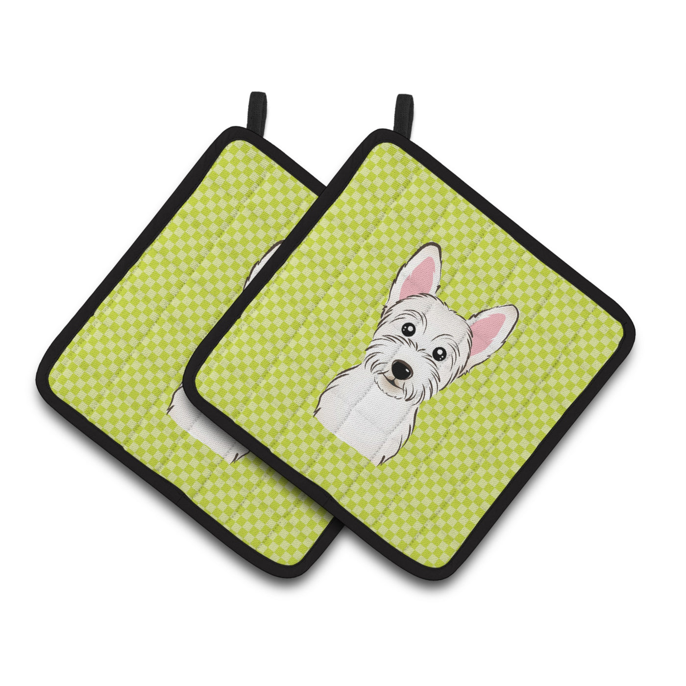 'Caroline's Treasures Checkerboard Lime green Westie Pair of Pot Holders BB1288PTHD 7.5HX7.5W Multicolor''