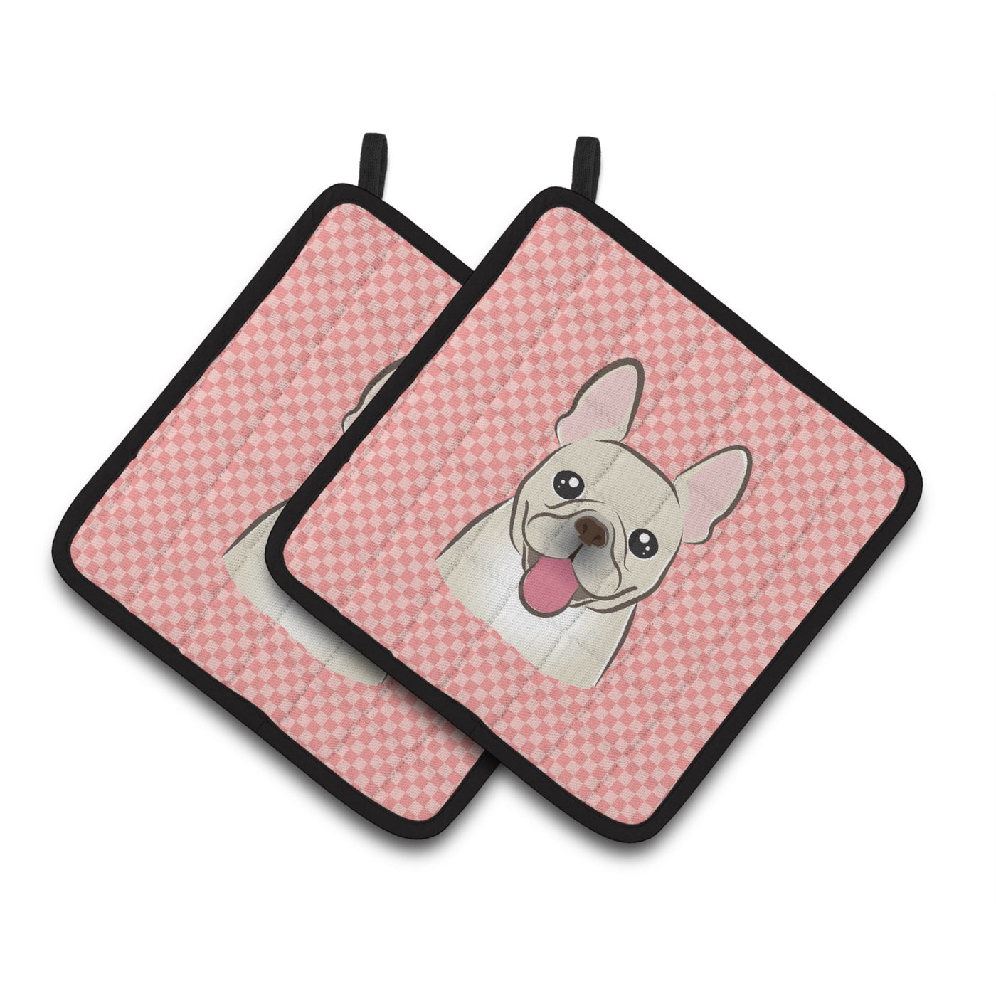 'Caroline's Treasures Checkerboard Pink French Bulldog Pair of Pot Holders BB1238PTHD 7.5HX7.5W Multicolor''