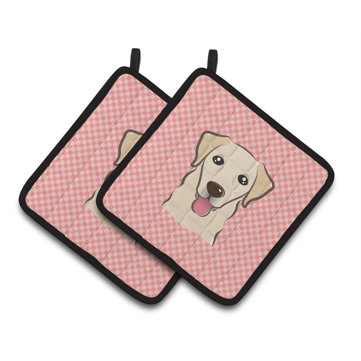'Caroline's Treasures Checkerboard Pink Golden Retriever Pair of Pot Holders BB1252PTHD 7.5HX7.5W Multicolor''