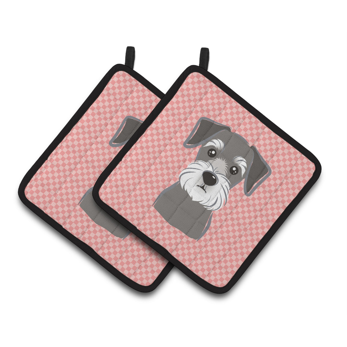 'Caroline's Treasures Checkerboard Pink Schnauzer Pair of Pot Holders BB1206PTHD 7.5HX7.5W Multicolor''