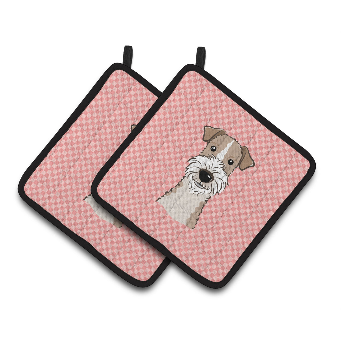 'Caroline's Treasures Checkerboard Pink Wire Haired Fox Terrier Pair of Pot Holders BB1247PTHD 7.5HX7.5W Multicolor''