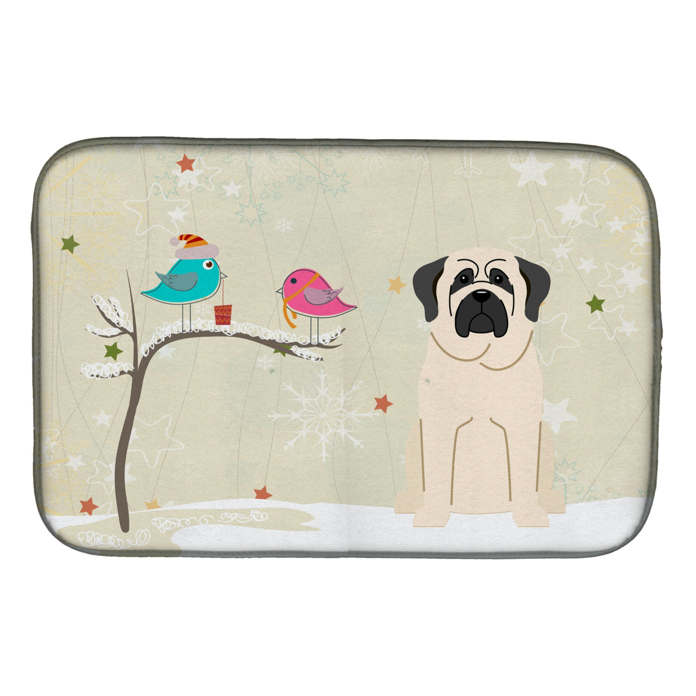 'Caroline's Treasures Christmas Presents between Friends Mastiff White Dish Drying Mat 14'''' x 21''''''