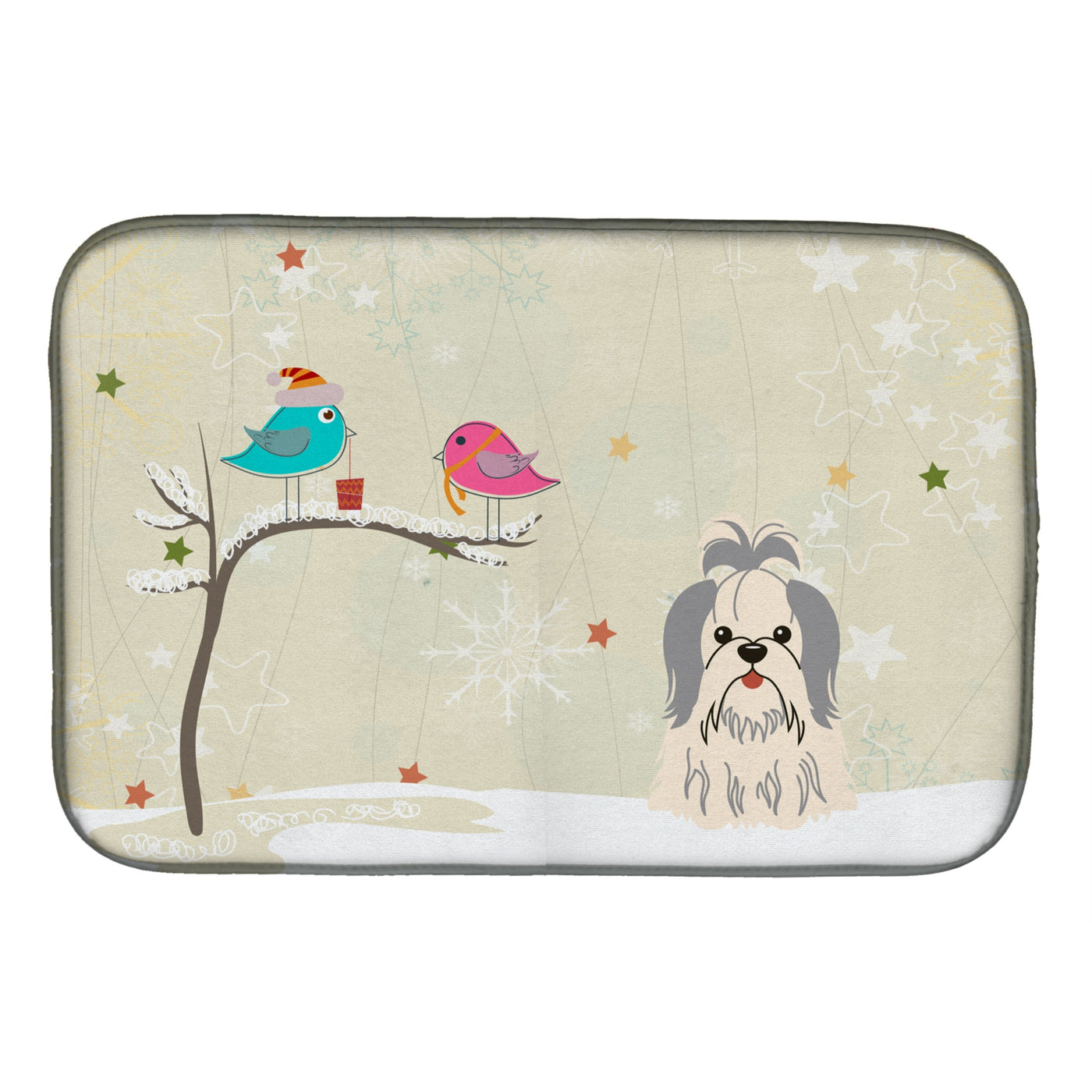 'Caroline's Treasures Christmas Presents Between Friends Shih Tzu Silver White Dish Drying Mat 14'''' x 21''''''