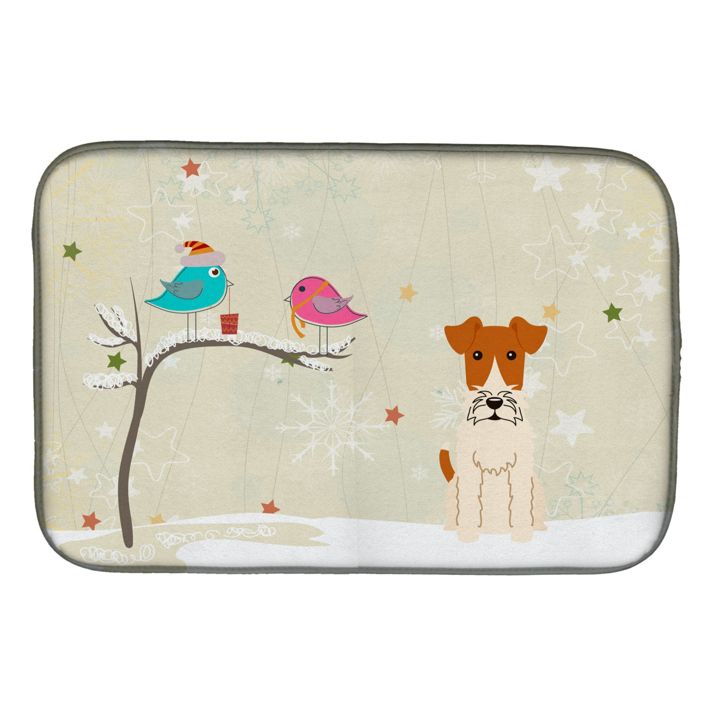 'Caroline's Treasures Christmas Presents Between Friends Wire Fox Terrier Dish Drying Mat 14'''' x 21''''''