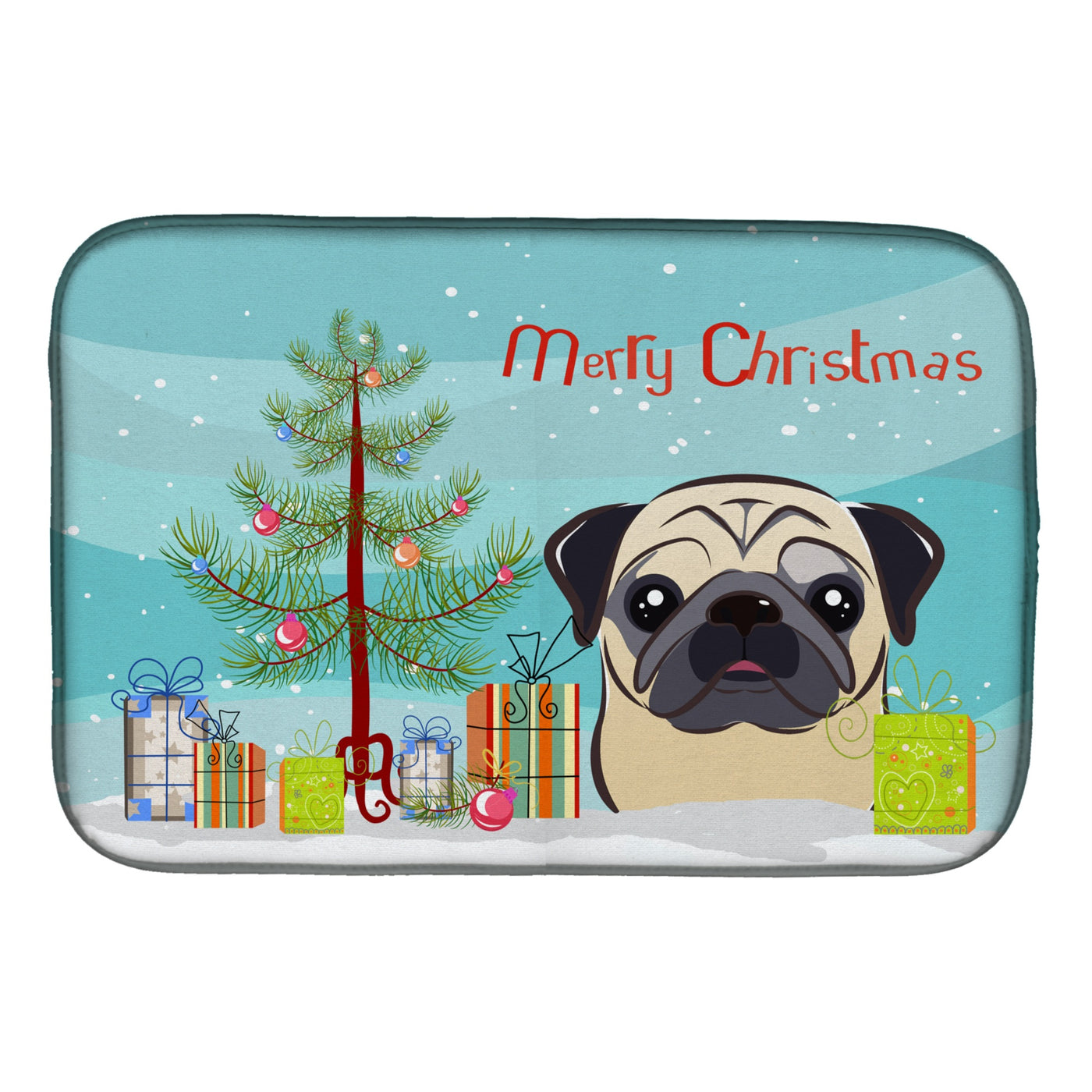 'Caroline's Treasures Christmas Tree And Fawn Pug Dish Drying Mat 14'''' x 21''''''