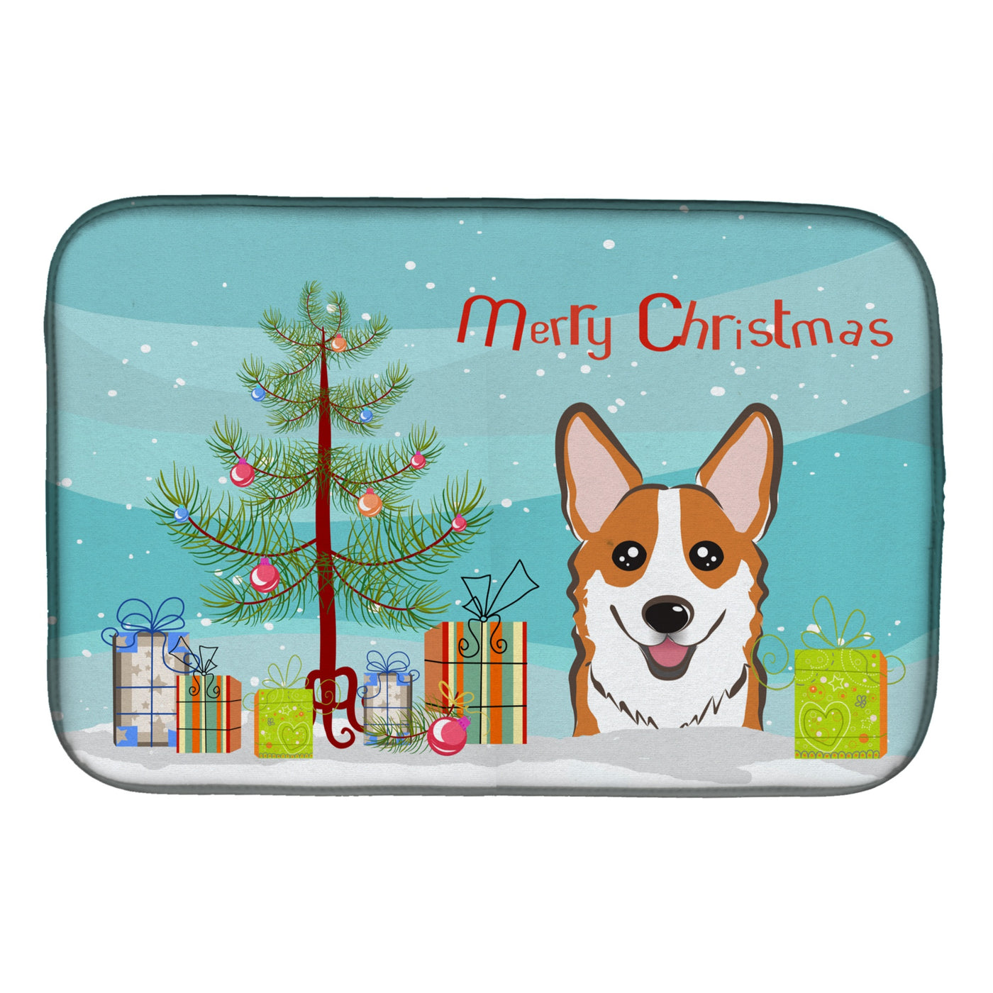 'Caroline's Treasures Christmas Tree and Red Corgi Dish Drying Mat 14'''' x 21''''''