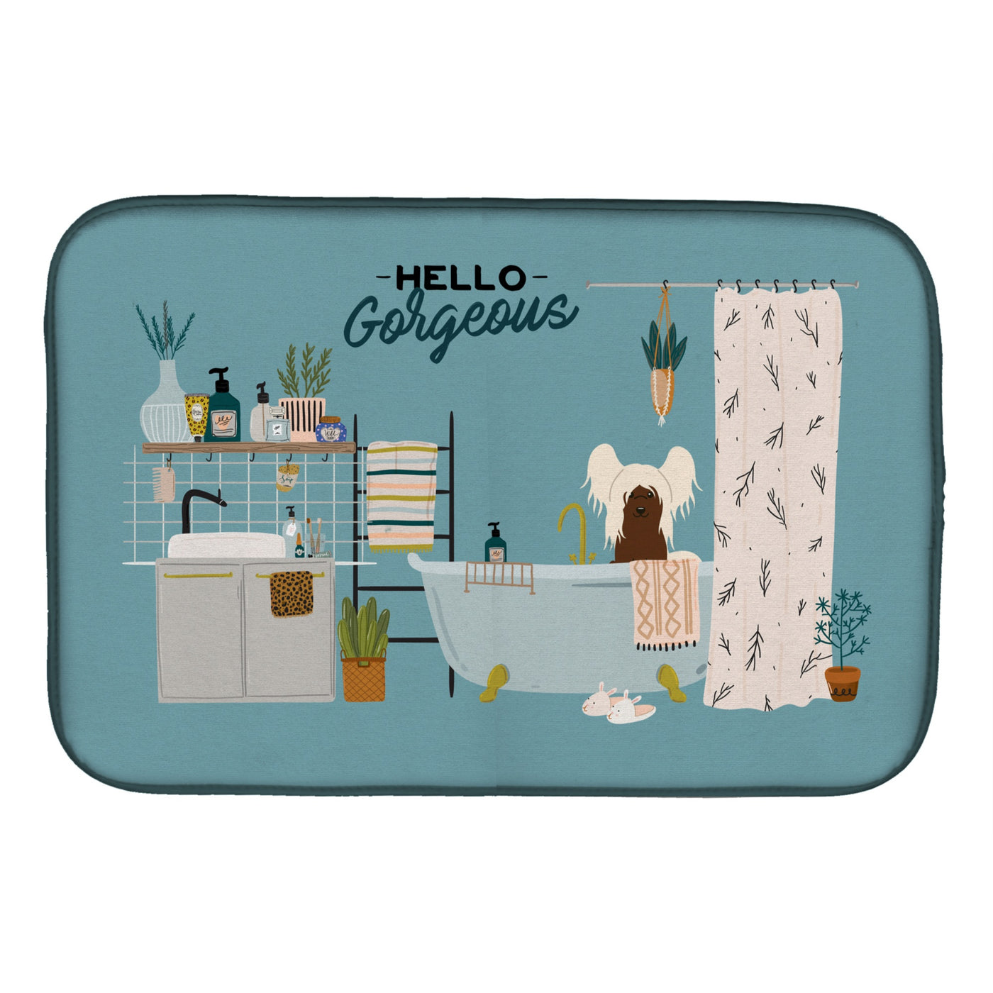 'Caroline's Treasures CK7535DDM Cream Chinese Crested in Bathtub dish-drying-mats 14 x 21 Multicolor''