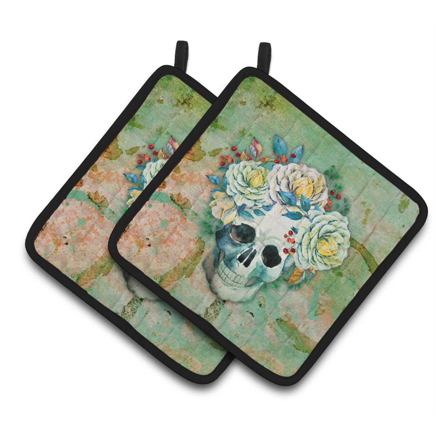 'Caroline's Treasures Day of The Dead Skull with Flowers Pair of Pot Holders 7.5HX7.5W Multicolor''
