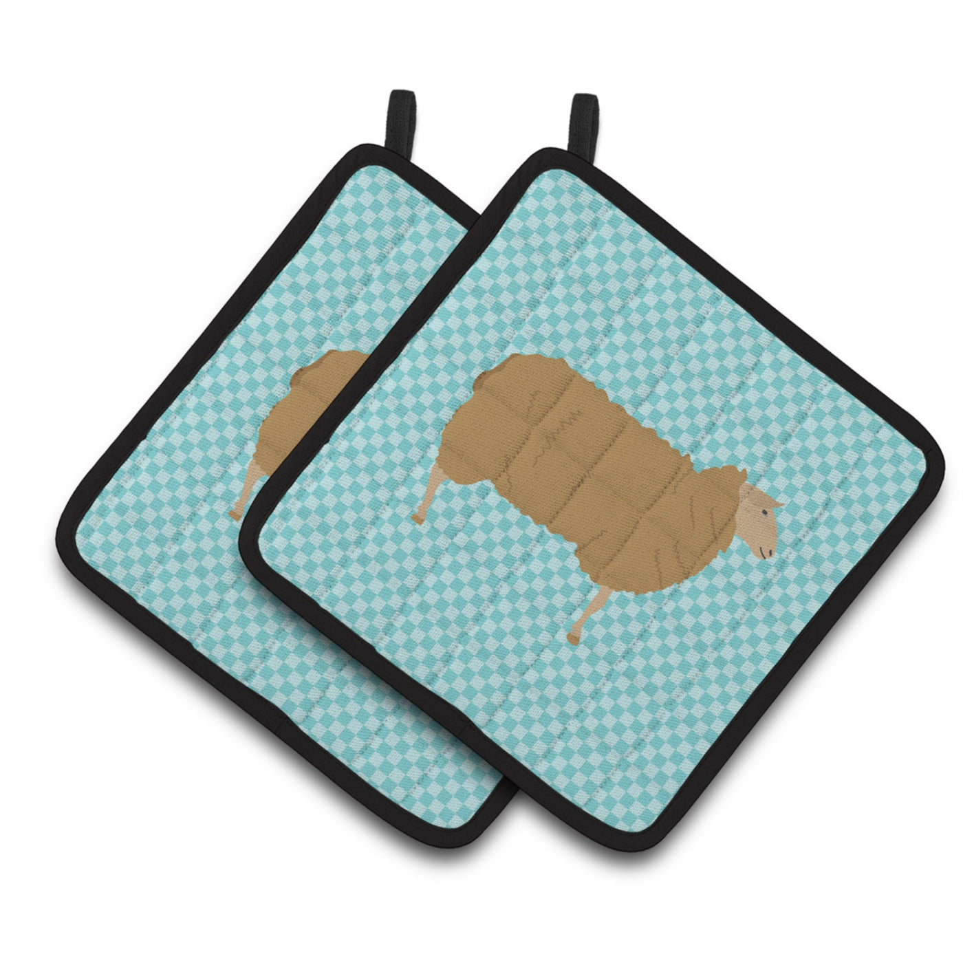 'Caroline's Treasures East Friesian Sheep Blue Check Decorated Pot Holder 7.5'''' x 7.5''''''