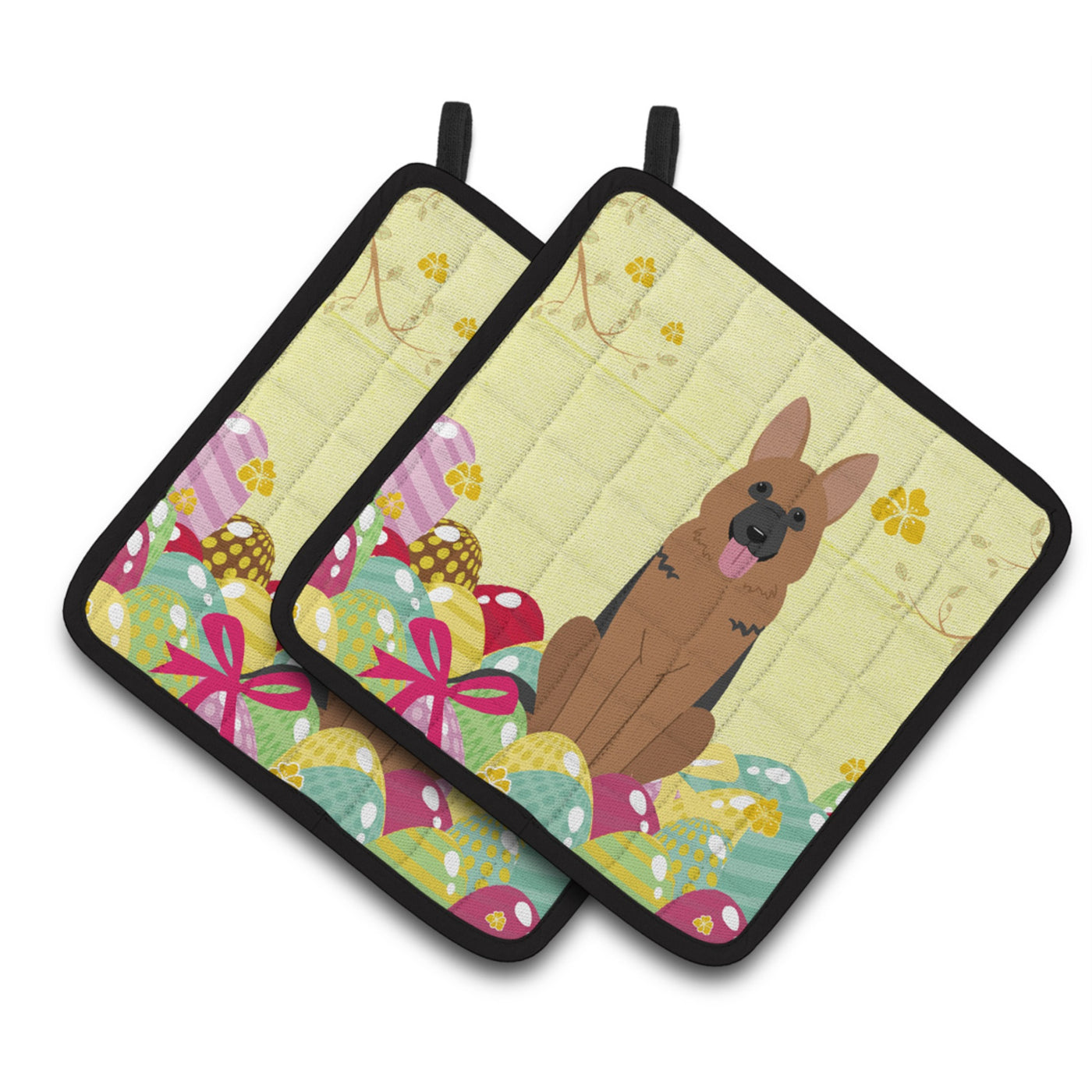 'Caroline's Treasures Easter Eggs German Shepherd Pair of Pot Holders 7.5HX7.5W Multicolor''