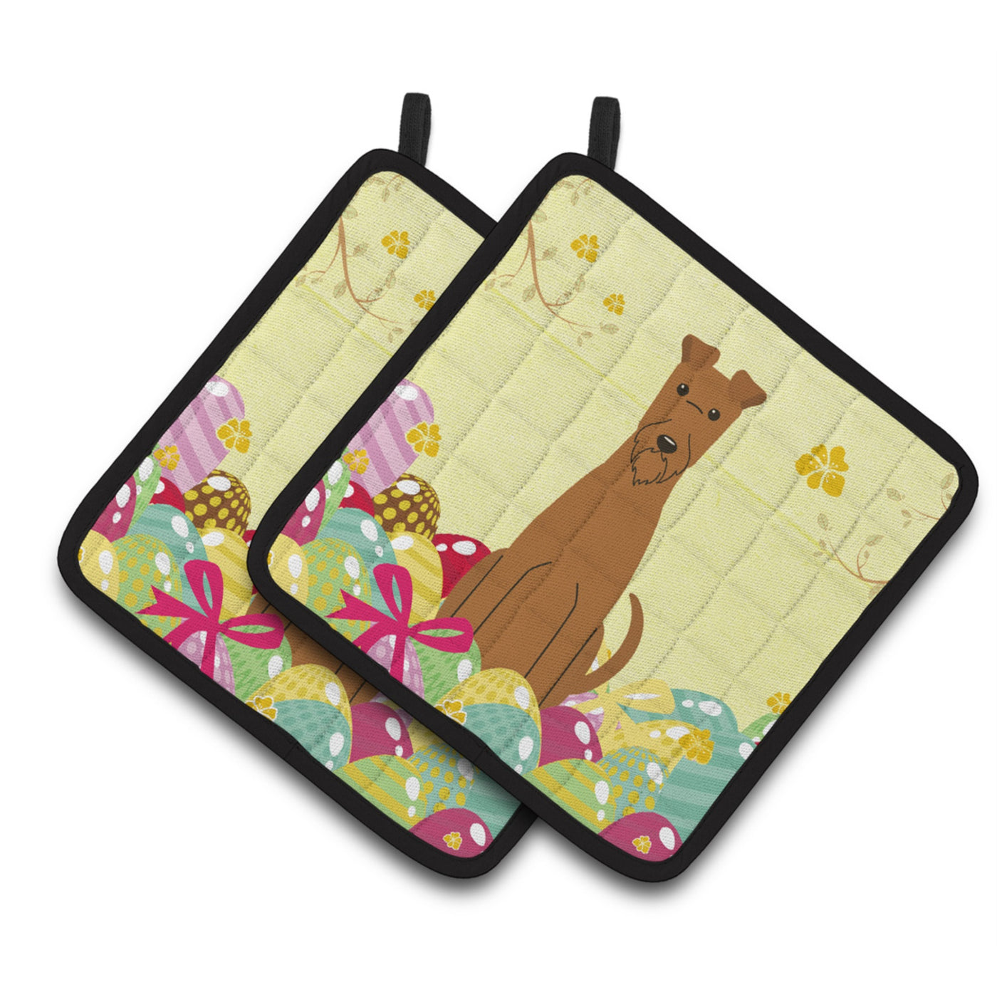 'Caroline's Treasures Easter Eggs Irish Terrier Pair of Pot Holders 7.5HX7.5W Multicolor''