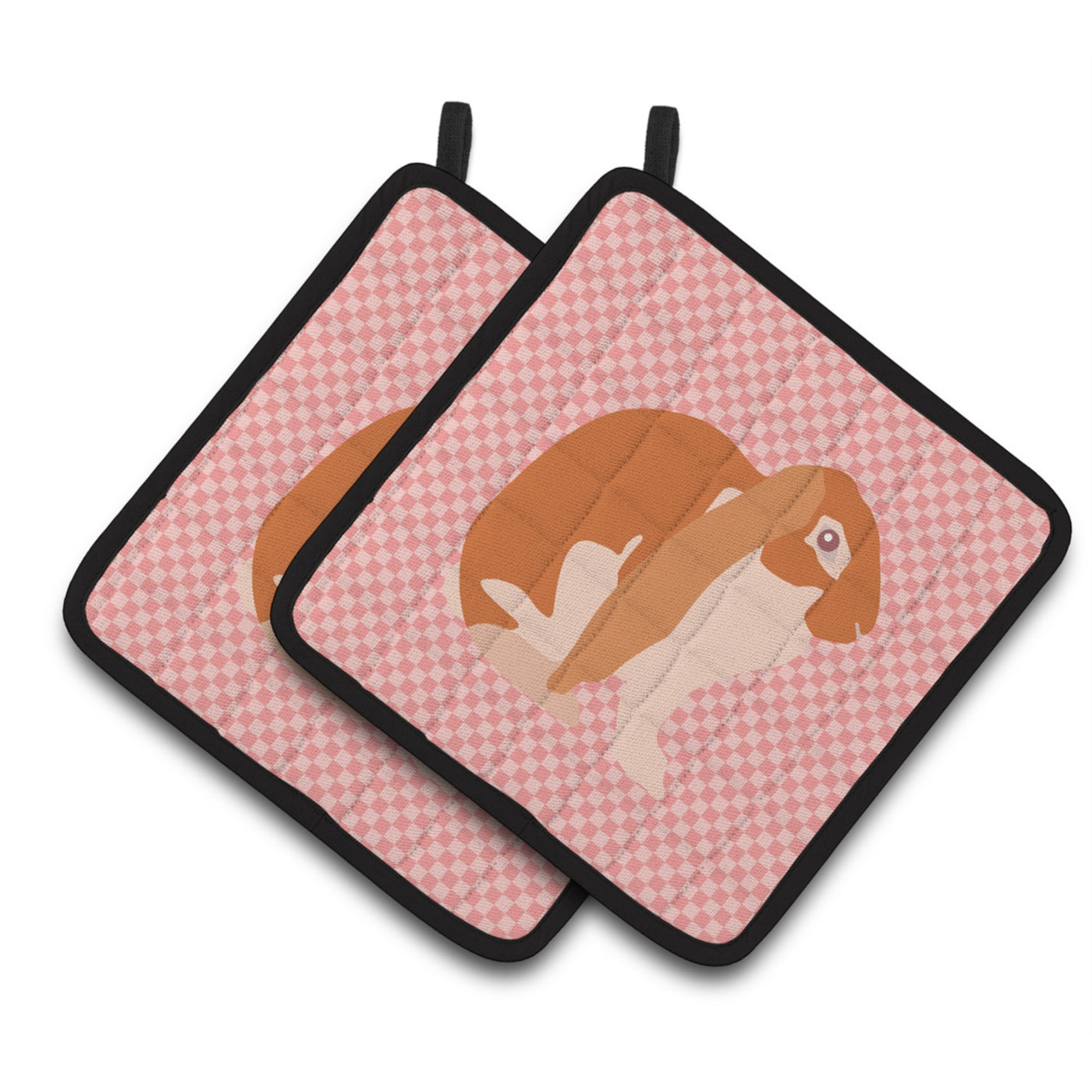 'Caroline's Treasures English Lop Rabbit Pink Check Decorated Pot Holder 7.5'''' x 7.5''''''