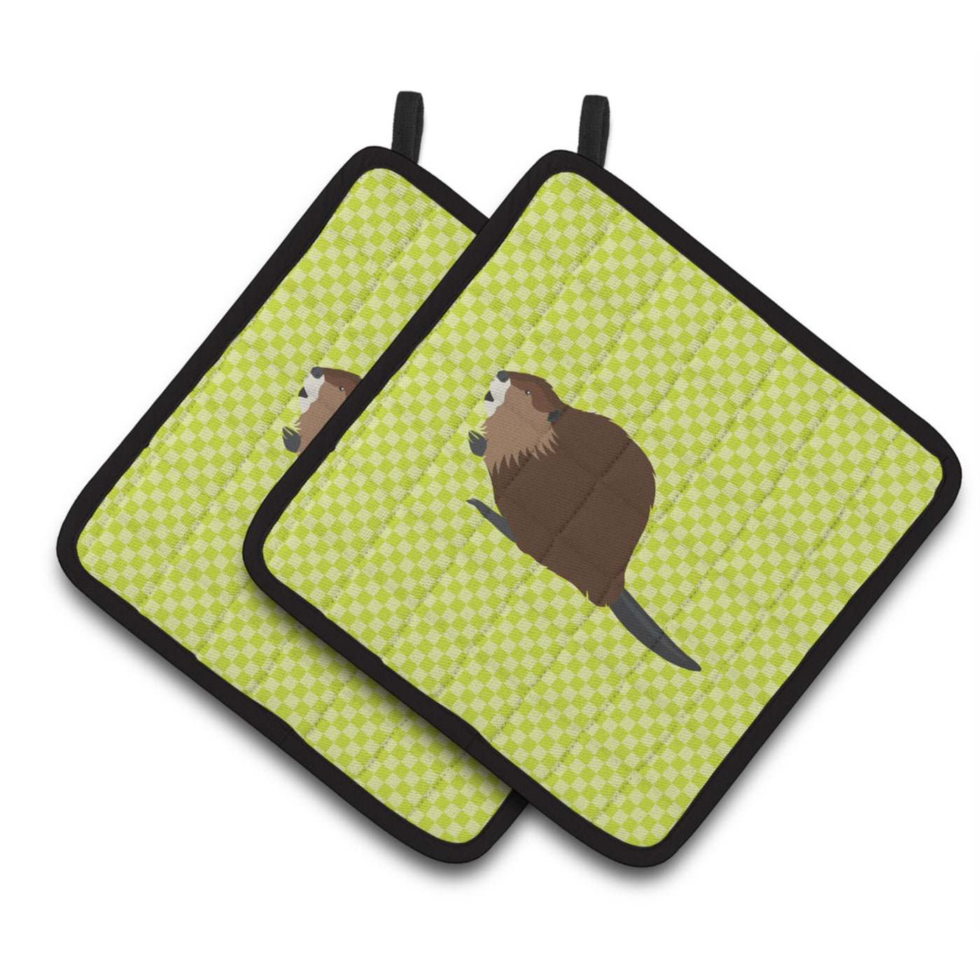 'Caroline's Treasures Eurasian Beaver Green Decorated Pot Holder 7.5'''' x 7.5''''''